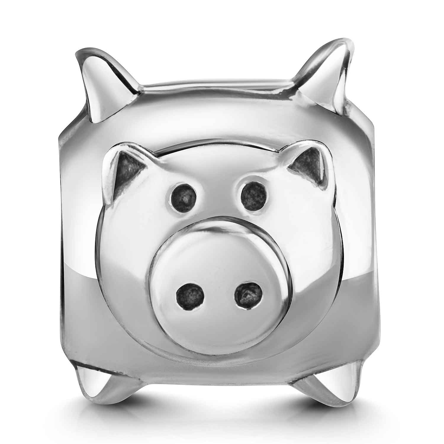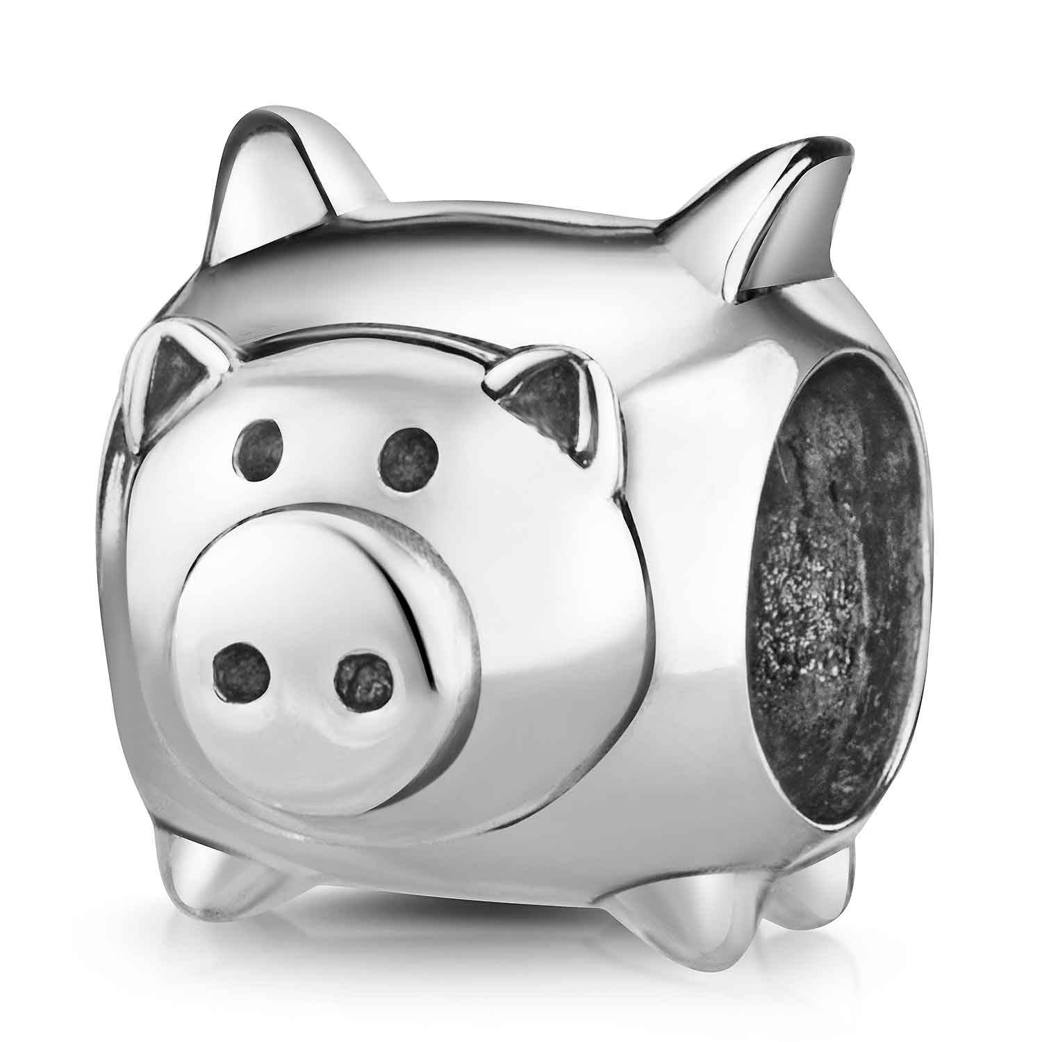 Silber Bead in Form eines Glücksschweins aus reinem 925 Sterling Silber. Der Charm ist kompatibel für Beads Armbänder bis 4,4mm und somit passend zu den meisten Marken Beads.