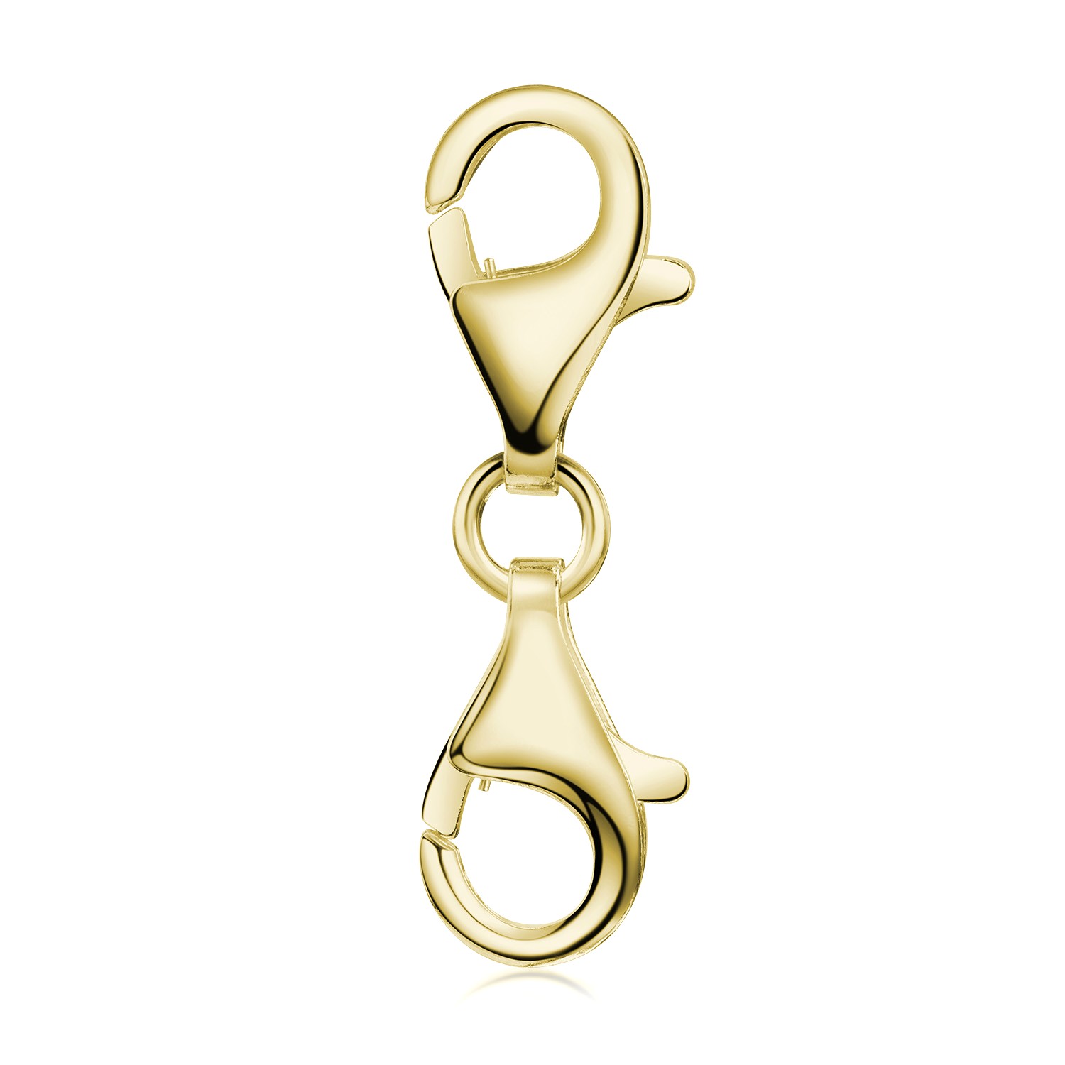 Dieser vergoldete Doppelkarabiner Verschluss ist aus 925er Silber gefertigt und lässt sich beliebig an Silber- oder Lederarmbänder sowie Ketten anbringen. Unser Schmuck Zubehör stammt aus deutscher Silberschmiede und ist in höchster Qualität gefertigt. Die Vergoldung ist äußerst resistent und wasserfest. Er eignet sich generell als Verschluss, wenn Ihr Armband die Möglichkeit zur Anbringung z.B. durch eine Öse an beiden Enden mitbringt.