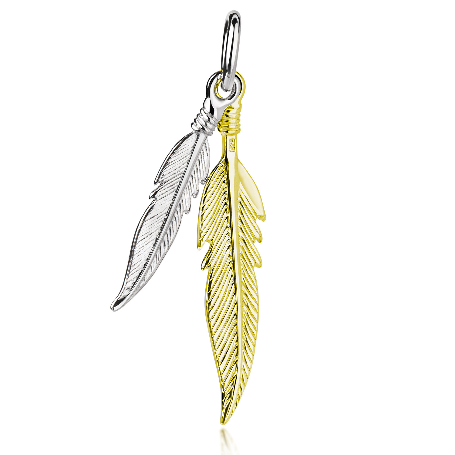 Materia Frauen Kettenanhänger im Feder Design - Echtsilber Anhänger vergoldet