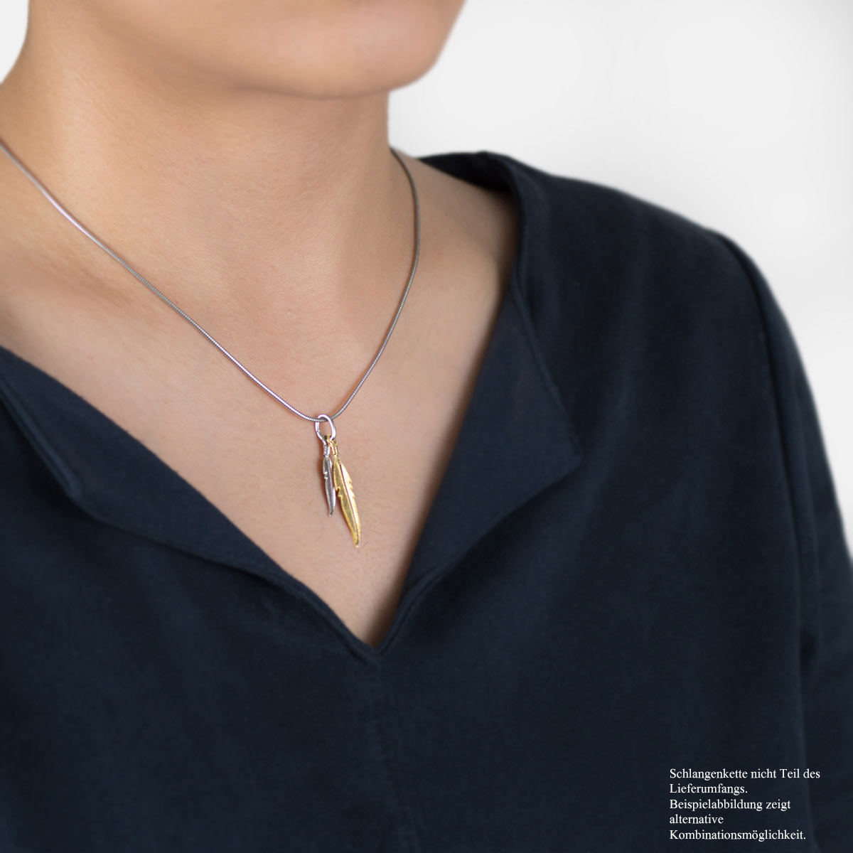 Pendel Kettenanhänger Feder in hervorragender Qualität. Auf Wunsch wird der Schmuck Anhänger mit passender Halskette ausgeliefert.