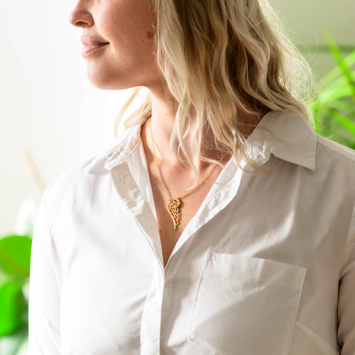 Filigranes Collier aus hartvergoldetem 925 Sterling Silber mit Flügel Anhänger in hochwertiger Qualität.
