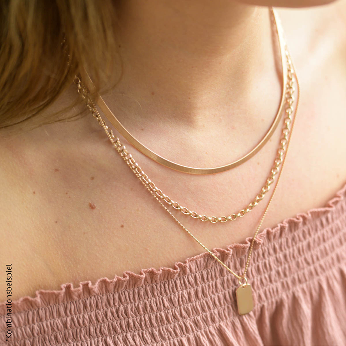 Gravur Anhänger in rosegold vergoldetem 925 Sterling Silber. Die kleine Gravurplatte in Form einer Dog Tag Plakette ist ideal für Damen oder jugendliche Mädchen - mit oder ohne Wunschgravur erhältlich.