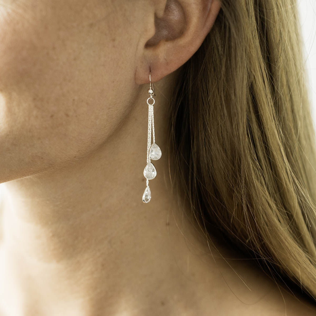 Damen Hängeohrringe aus 925 Sterling Silber mit je 3 weißen tropfenförmigen Zirkonia Steinen.