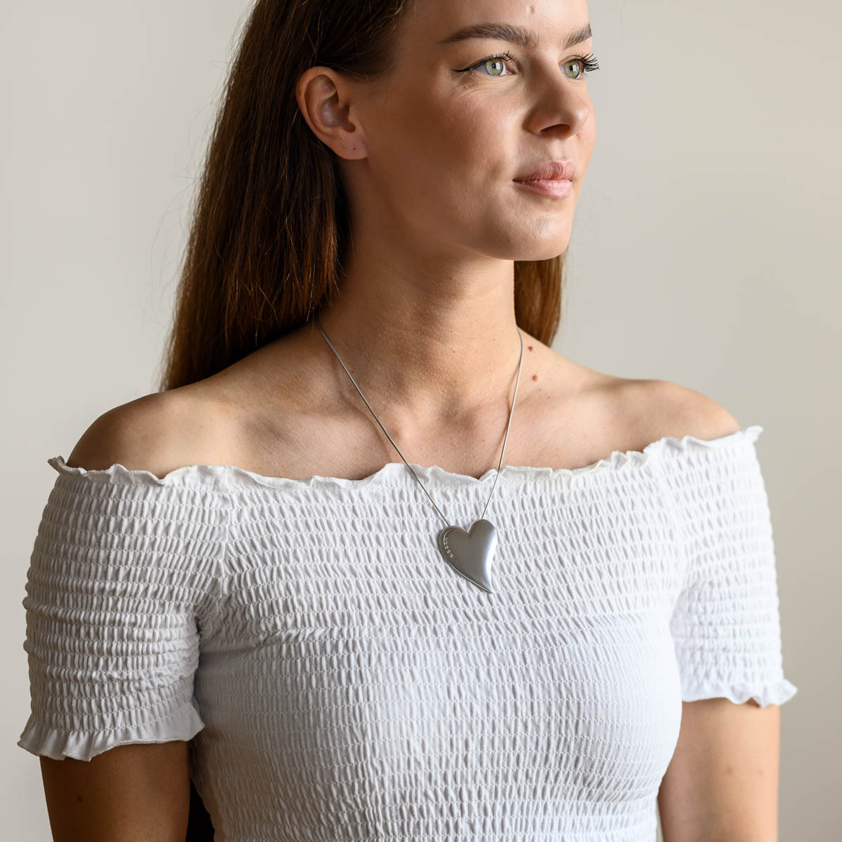 Klassisch und doch modern wirkt unser silberner Herzanhänger. Die Oberfläche wurde gebürstet und erhält durch diese Mattierung eine sehr edle Optik. Durch die gebogene Form kommt das Herz besonders plastisch zur Geltung.
