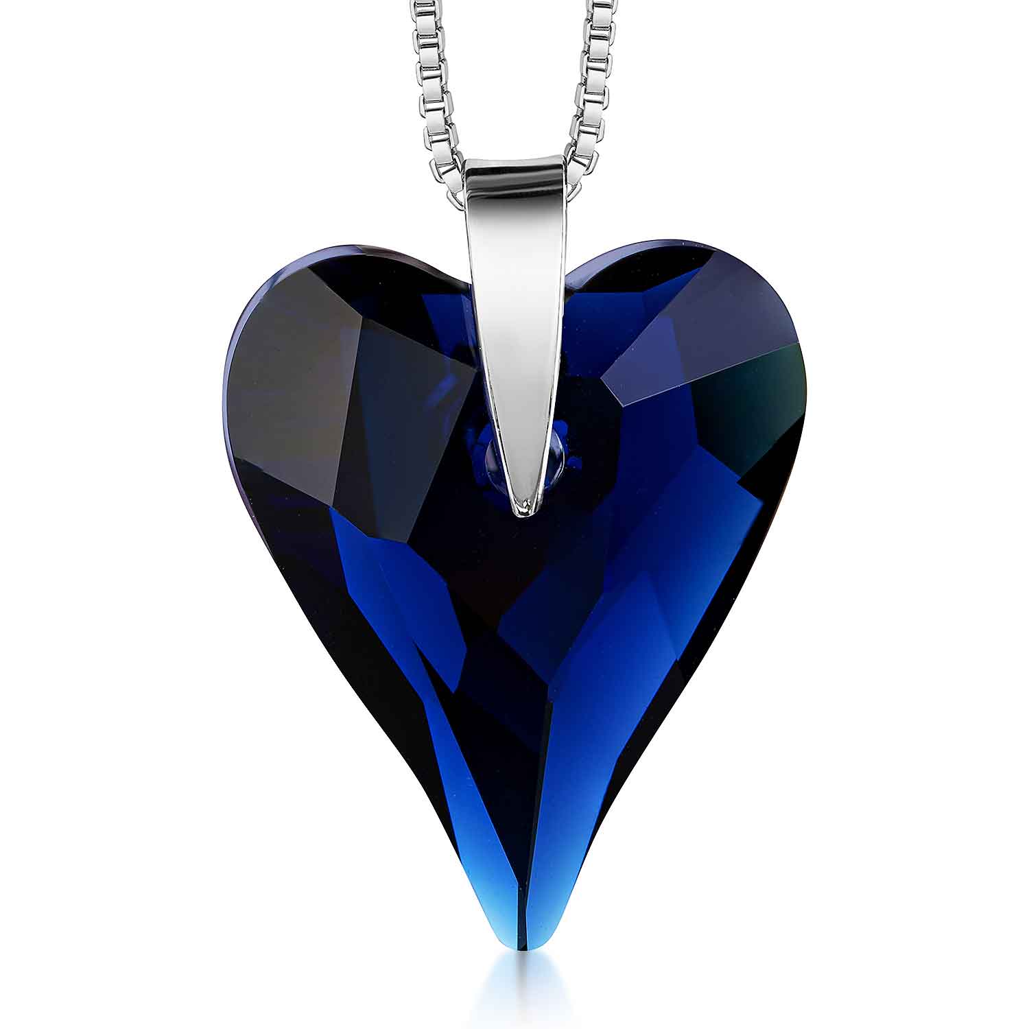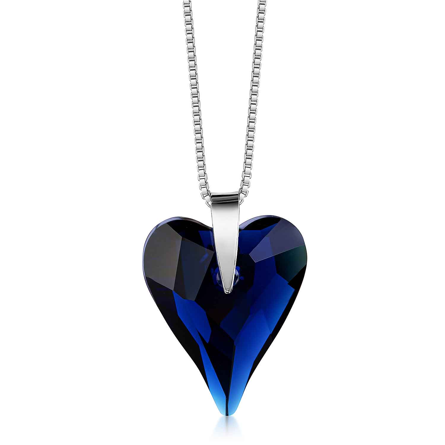Längenverstellbare Halskette mit dunkelblauem Herz Anhänger aus 925 Sterling Silber, bestückt mit 1 herzförmigen Glaskristall.