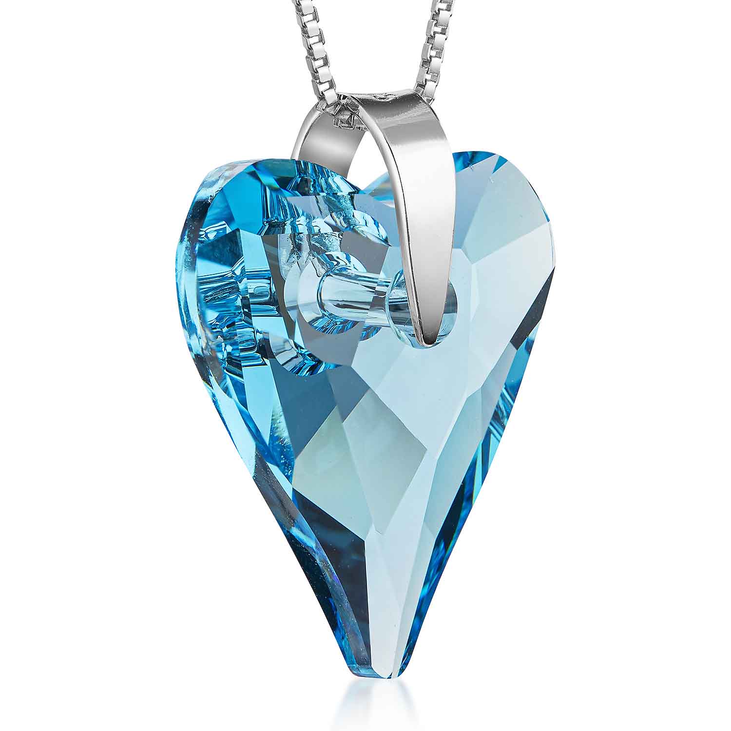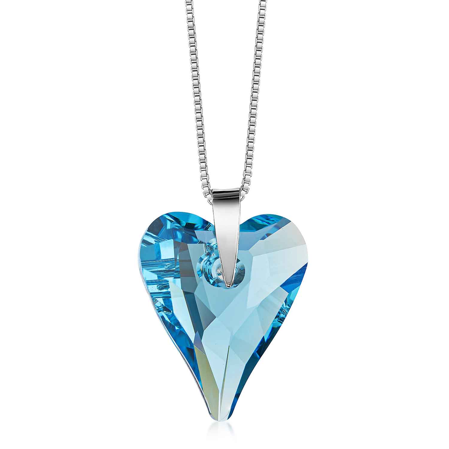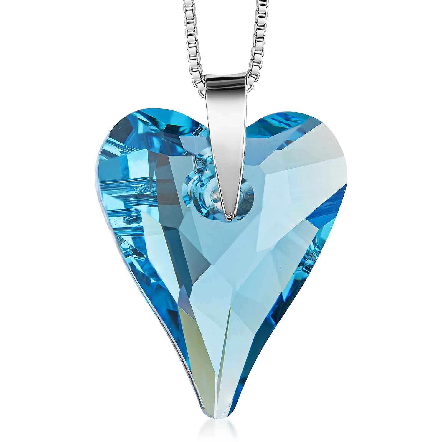 Längenverstellbare Halskette mit hellblauem Herz Anhänger aus 925 Sterling Silber, bestückt mit 1 herzförmigen Glaskristall.