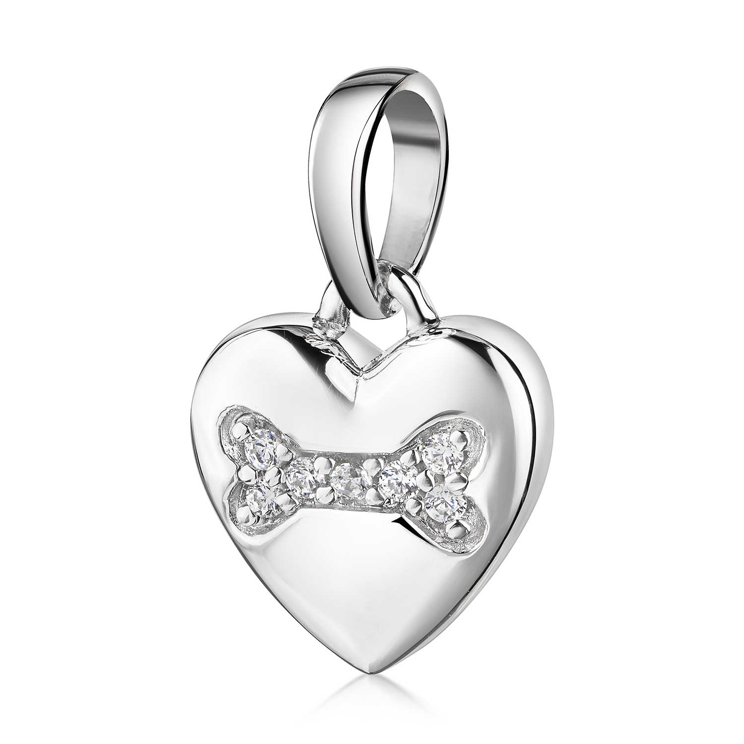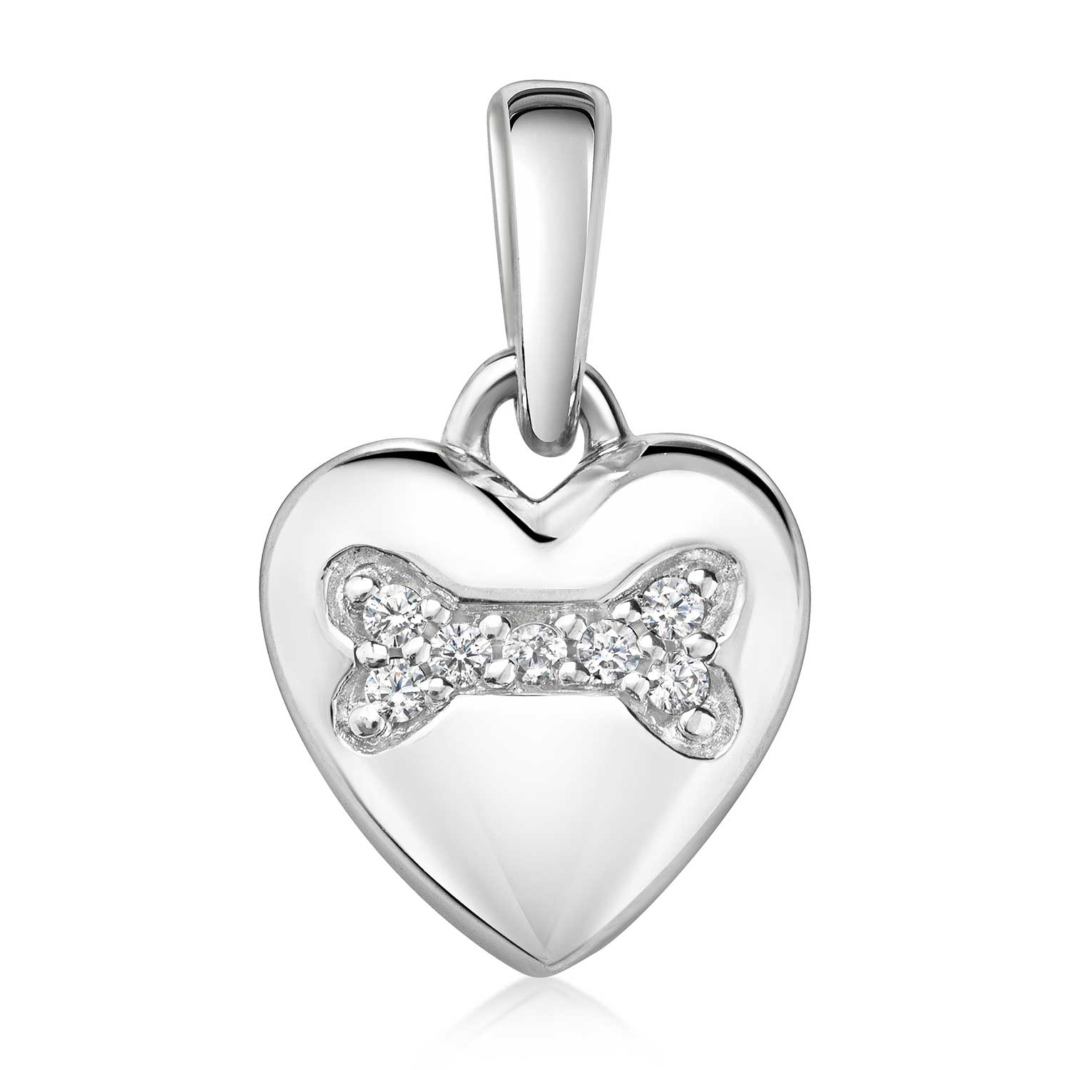 Rhodinierter 925 Silber Herz Anhänger mit einem Hundeknochen-Motiv aus Zirkonia Steinen. Auf Wunsch mit einer Ankerkette in verschiedenen Länge bestellbar.