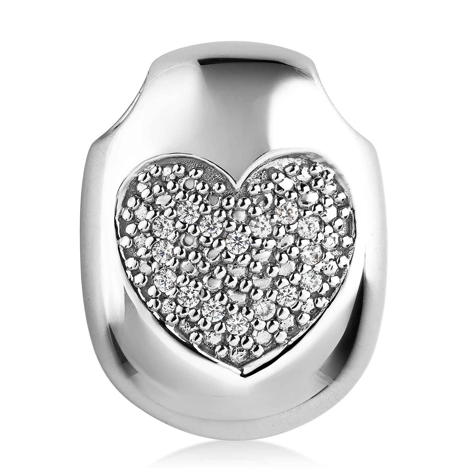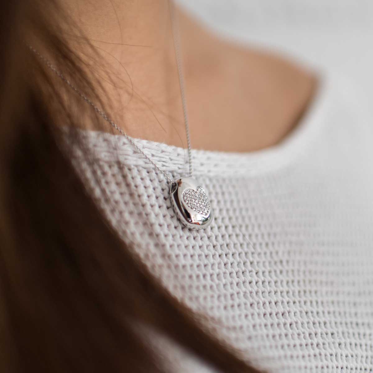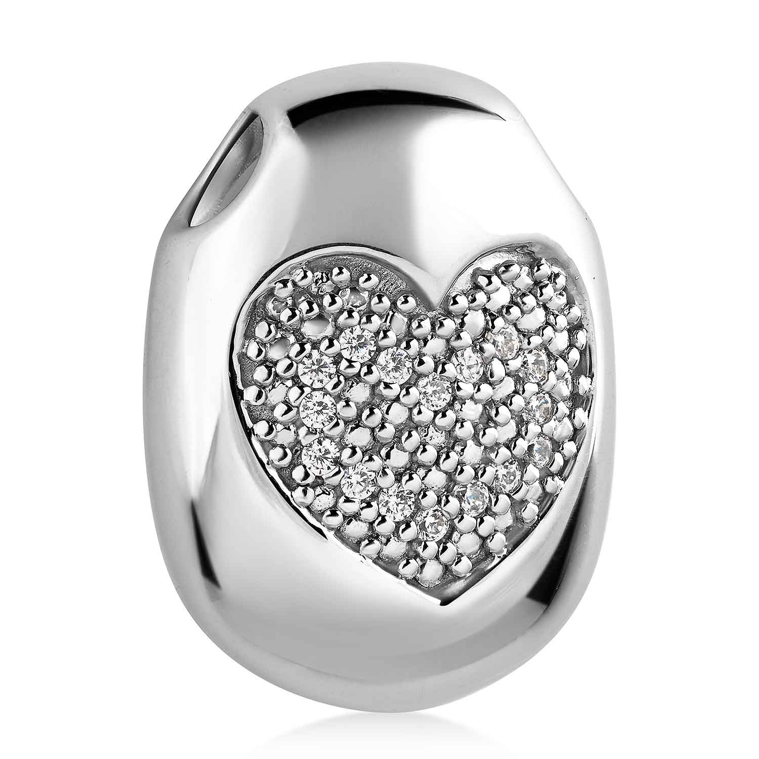 Ovaler Kettenanhänger mit Herz aus rhodiniertem 925 Sterling Silber, besetzt mit 16 weißen Zirkonia Steinen.