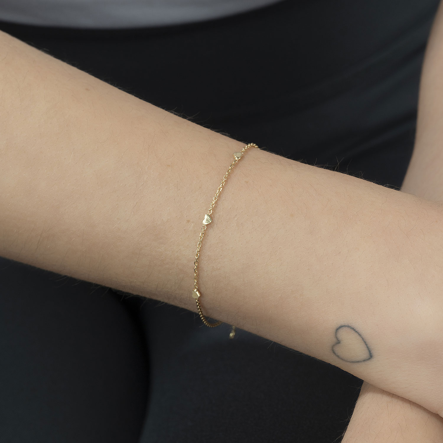 Zartes Schmuckstück mit großer Wirkung – diese Armkette mit 3 süßen Herzchen schmiegt sich wundervoll filigran an das Handgelenk und lässt sich durch das filigrane Design vielseitig kombinieren.