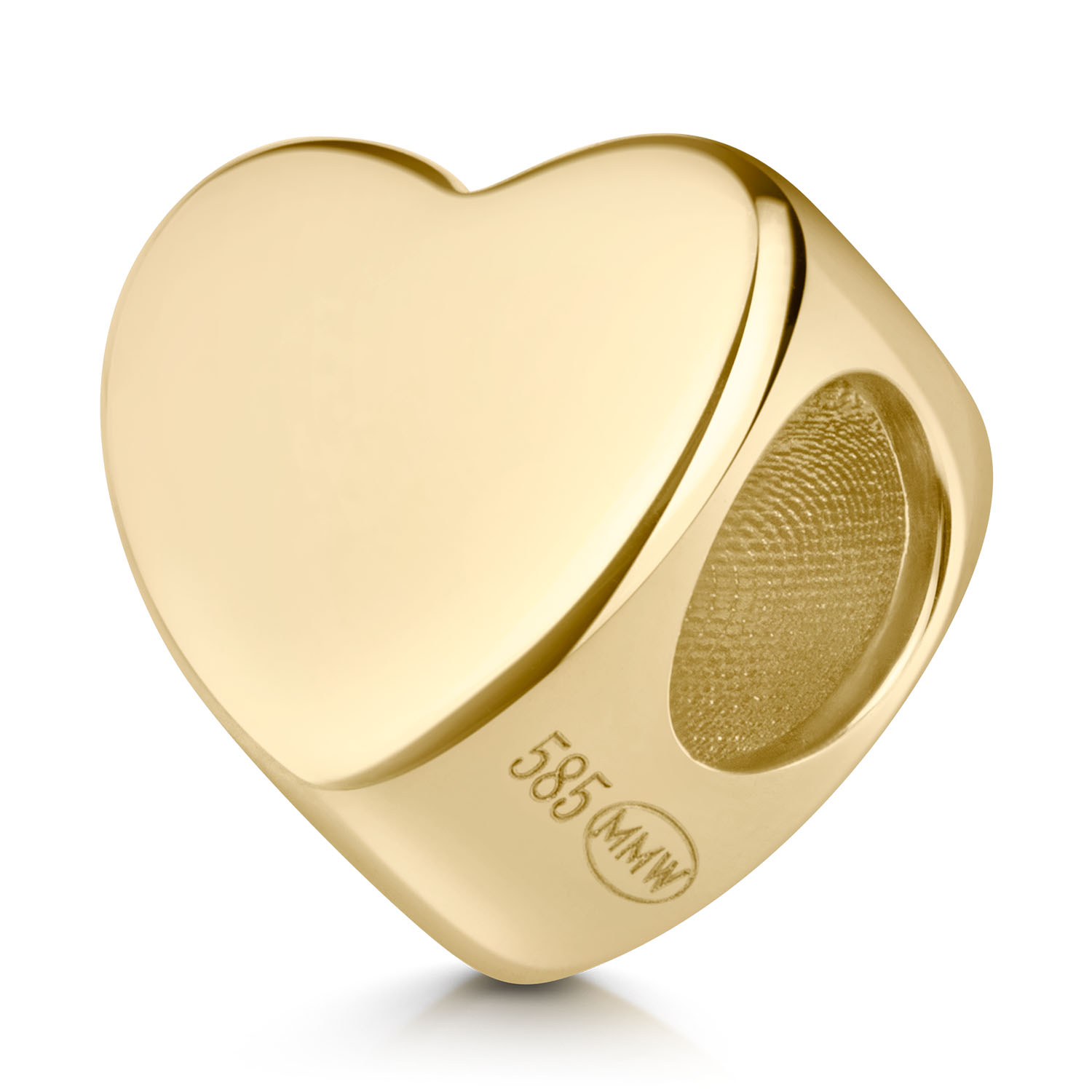 Romantischer Bead in Herzform aus 585 Gelbgold für Armbänder und Ketten bis max. 4,2mm Stärke.