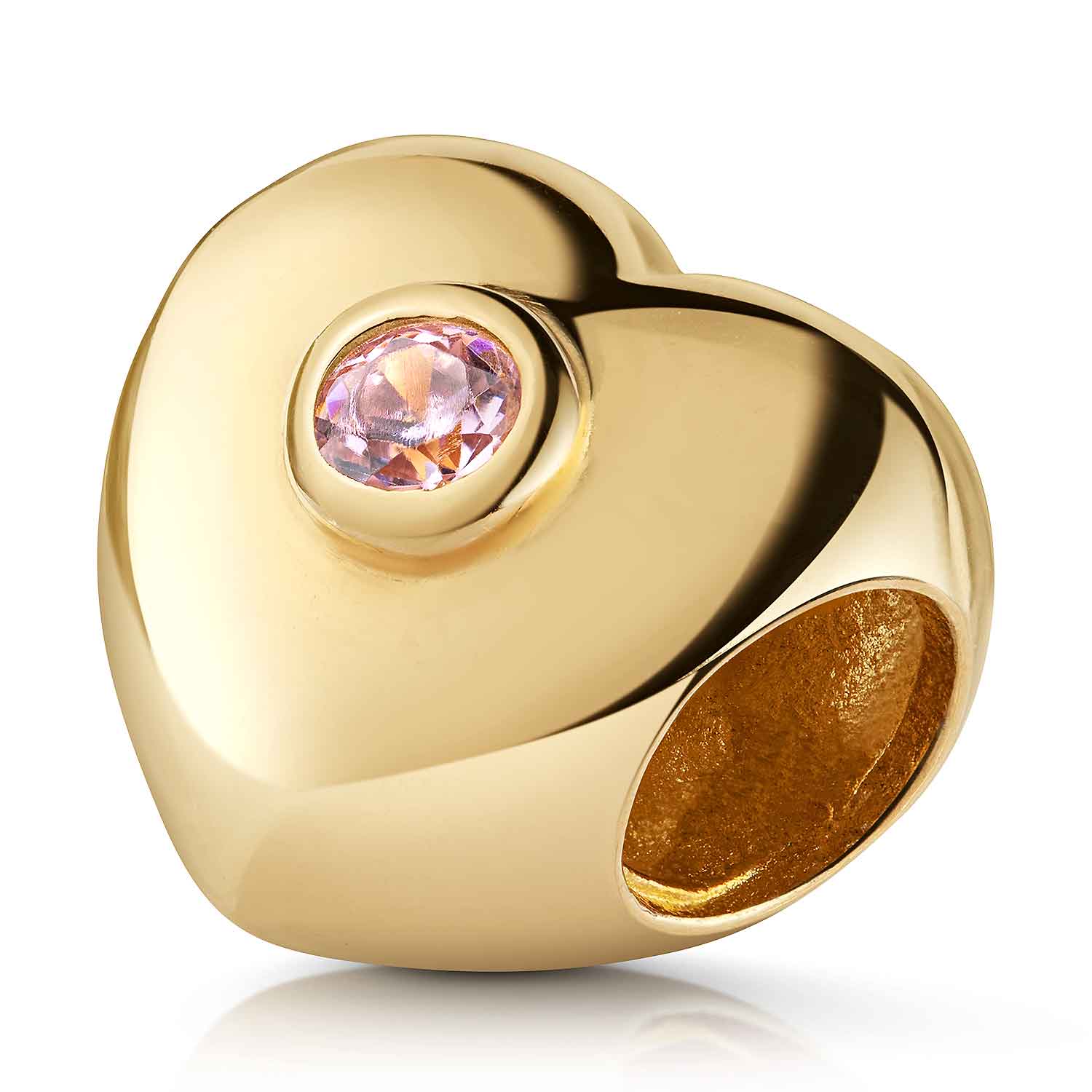 Edler Herz Bead aus vergoldetem 925 Sterling Silber und 2 rosafarbenen Zirkonia Steinen. Dieses Gold Bead Element ist passend für Bead Armbänder / Beads Ketten bis 4,4mm.