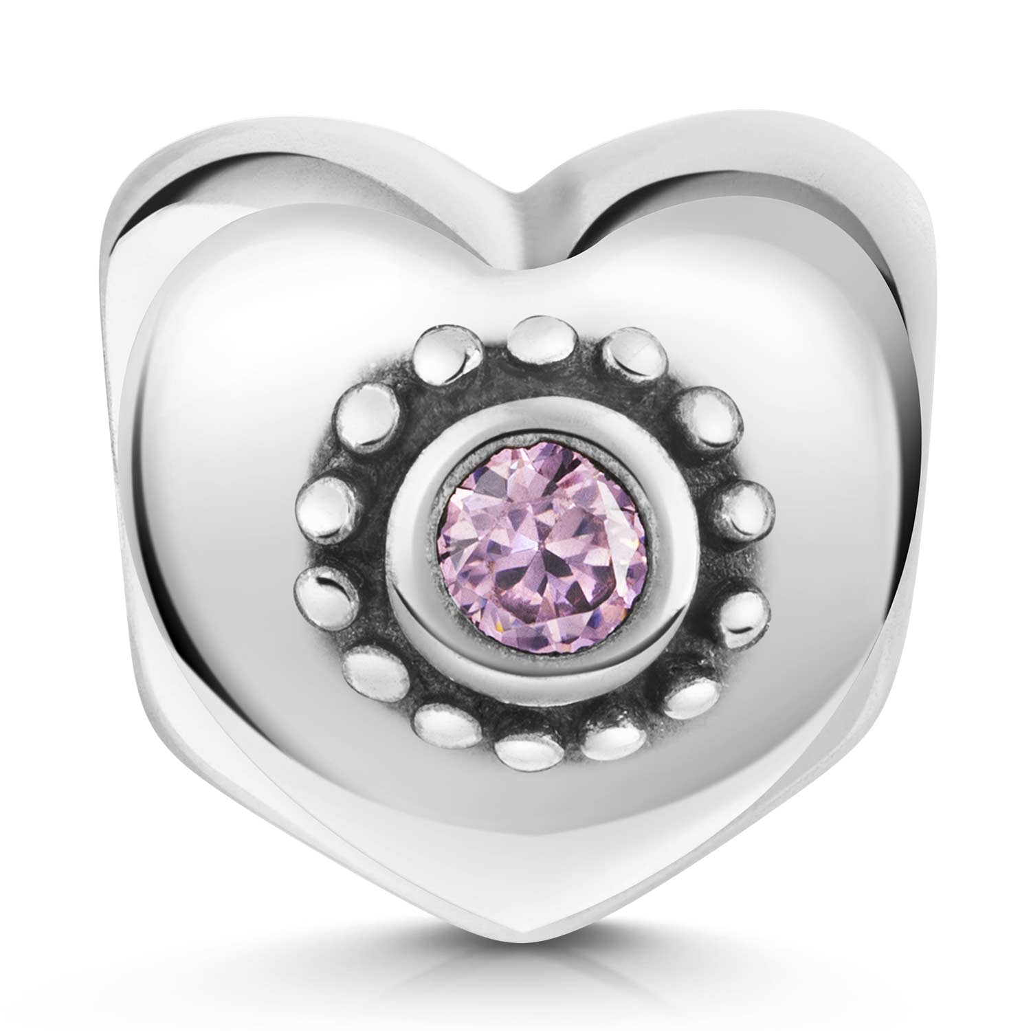 Silber Charm in Herzform mit 2 rosa Zirkonia aus 925 Sterling Silber, geeignet für alle Beads Armbänder und Ketten bis 4,4mm Stärke.