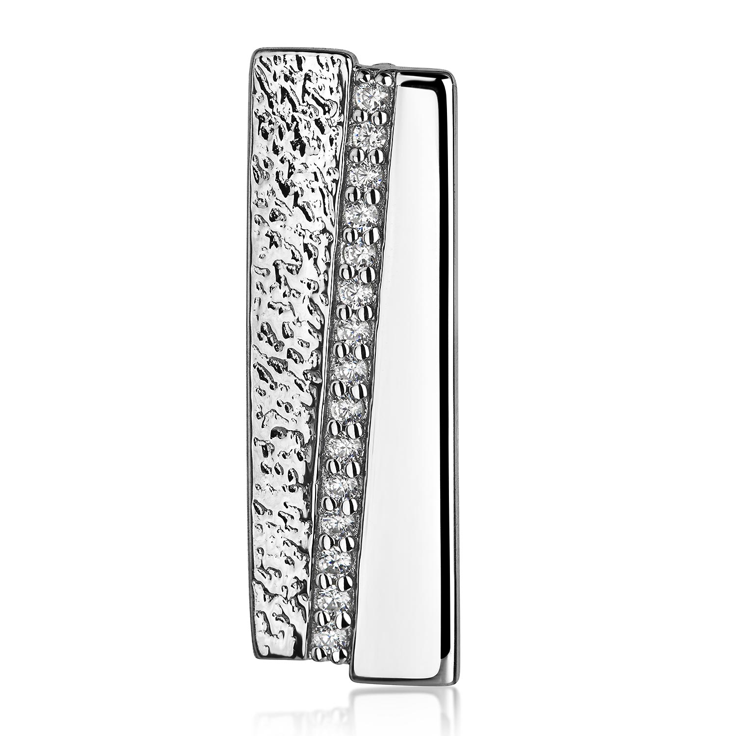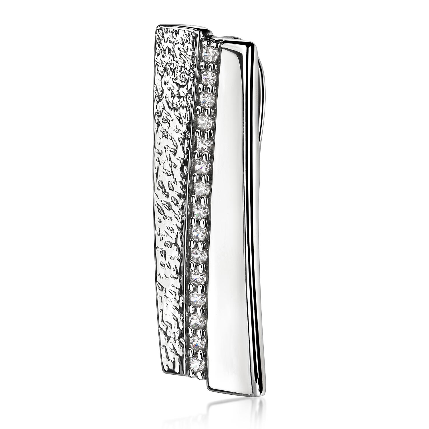 Länglicher Kettenanhänger mit verschiedenen Oberflächen aus rhodiniertem 925 Sterling Silber mit zahlreichen weißen Zirkonia Steinen.