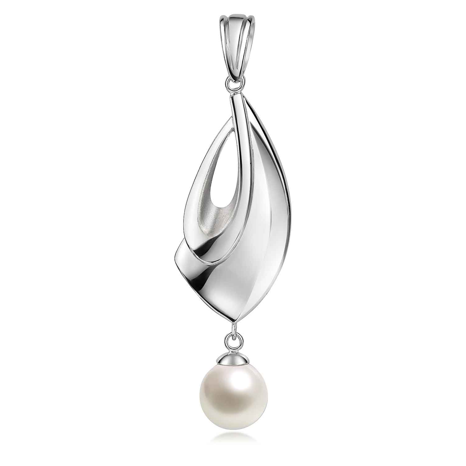 Edler Damen Kettenanhänger aus 925 Silber mit 1 echten Perle aus Süßwasserzucht. Die Perle wurde an einem Pendel / Aufhängung am Kettenanhänger befestigt und kann somit frei am Anhänger schwingen. Dieser Perlen Anhänger wurde in hochwertiger Juwelierqualität aus massivem 925 Sterling Silber gefertigt und im Anschluss rhodiniert. Durch die Veredelung mit Rhodium, wird der Silber Anhänger langfristig gegen ein Anlaufen geschützt.