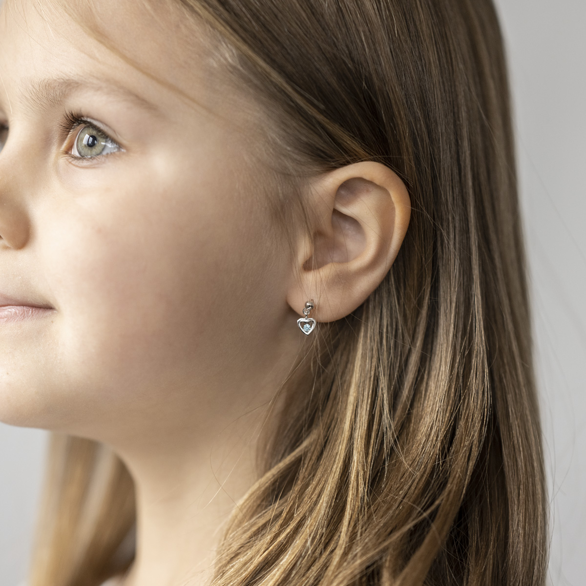 Süße Kinder Ohrringe mit Herz Anhänger aus 925 Silber mit türkisfarbenen Zirkonia. Ideal für empfindliche Kinderohren durch die hochwertige Fertigung aus hautfreundlichem 925 Sterling Silber.