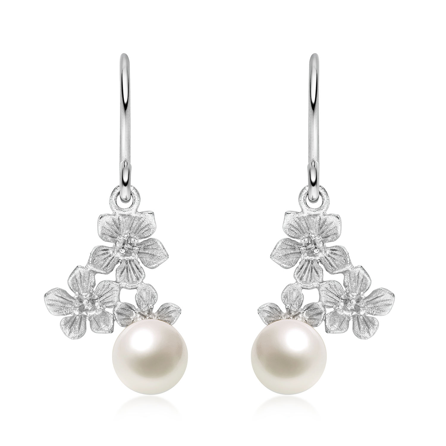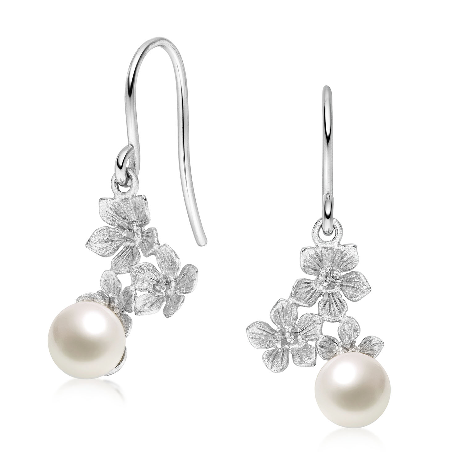 Wunderschöne Ohrringe im Kirschblüten-Design mit einer echten Perle aus Süßwasserzucht, gefertigt aus rhodiniertem 925 Sterling Silber