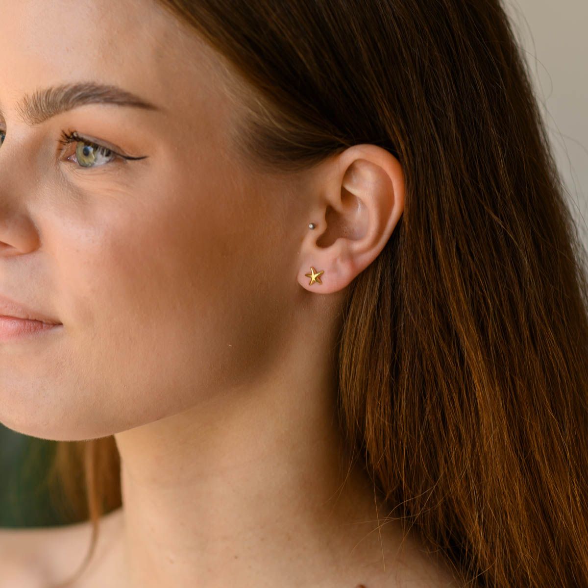 Süße kleine Gold Ohrstecker mit Seestern Motiv aus vergoldetem 925er Sterling Silber