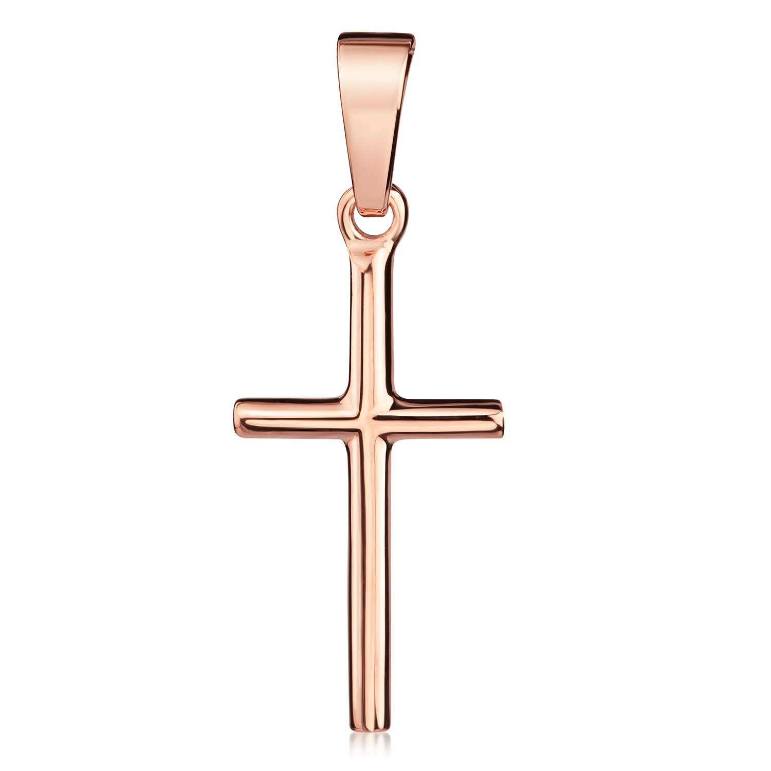 Unser Unisex Kreuz Anhänger wurde aus massivem 925 Sterling Silber gefertigt und sieht einfach klassisch und dezent aus. Das Schmuckstück ist schlicht gearbeitet und deckt somit alle Glaubensrichtungen des Christentums ab und kann sowohl von Herren, Damen und Kindern getragen werden. Das Schmuckstück wurde aus massivem 925 Silber gearbeitet und rosé vergoldet, wodurch er auch gegen das Anlaufen wirksam geschützt ist. Die Vergoldung ist zudem wasserfest und sehr langlebig. Der Anhänger ist passend für Ketten bis zu einer max. Durchmesser von 2,5mm und kann wahlweise in Kombination mit einer längenverstellbaren Ankerkette in 42 bis 47cm Länge bestellt werden.