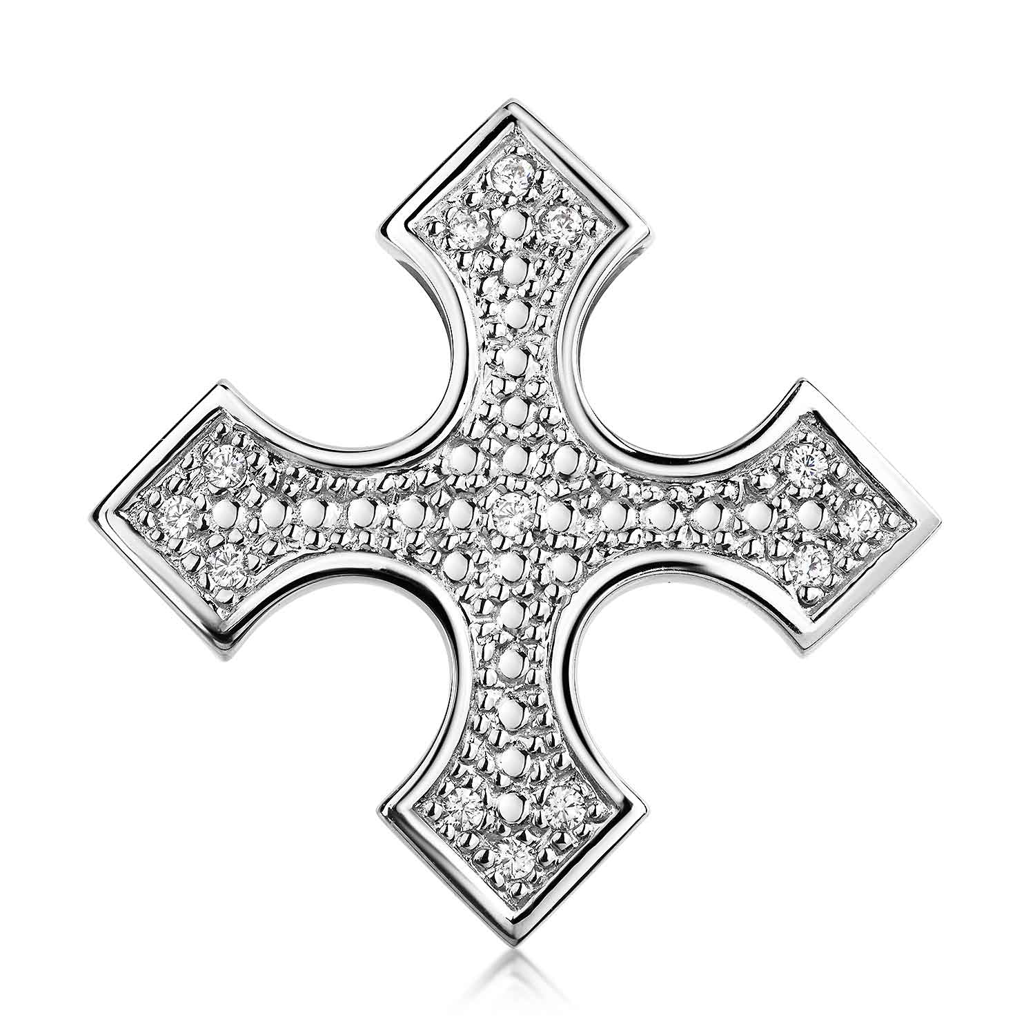 Rhodinierter 925 Silber Anhänger in Form eines Tolosanerkreuzes mit weißen Zirkonia, gefertigt in erfahrener Silberschmiede.