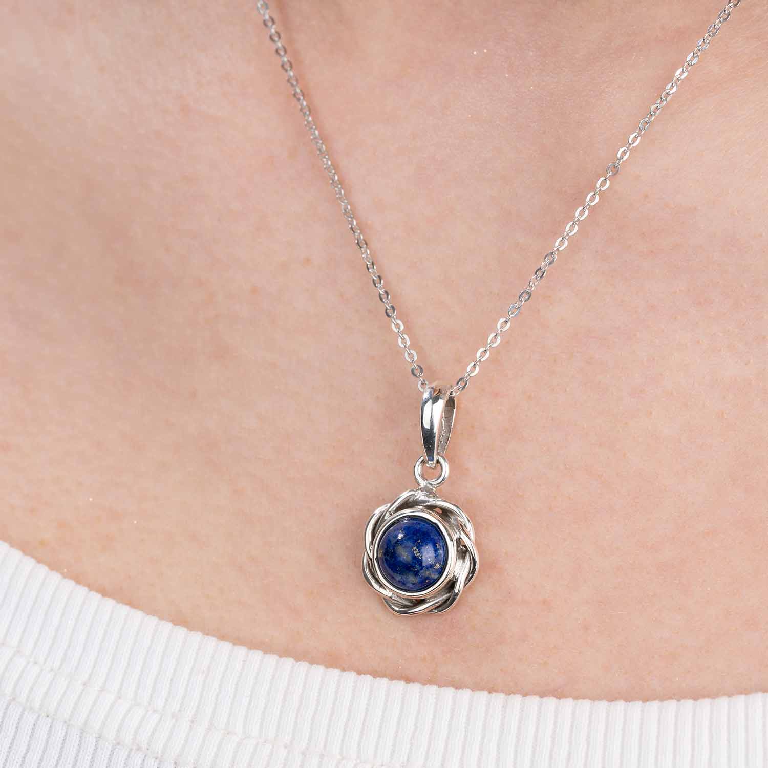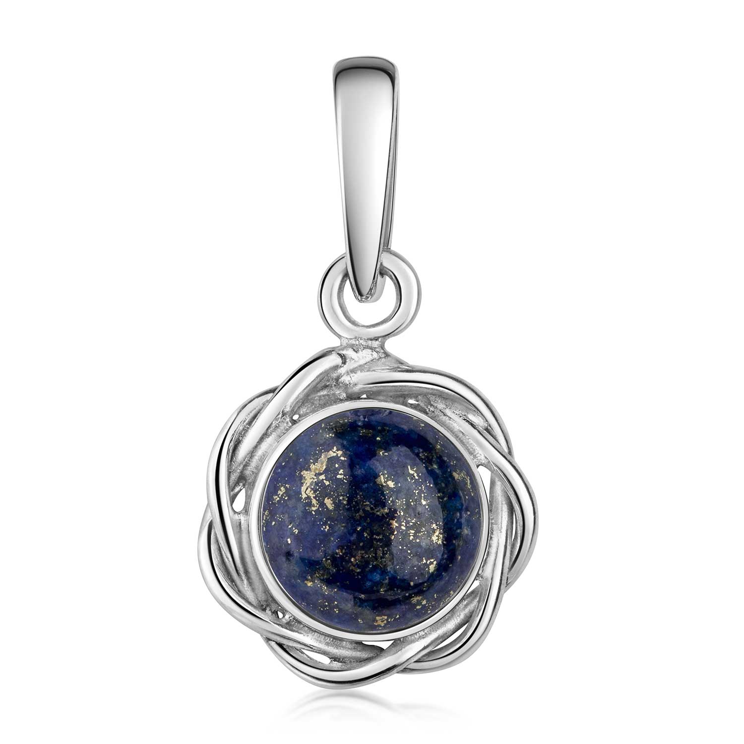 Edler Edelstein Anhänger aus 925 Sterling Silber mit einem rund geschliffenen Lapislazuli. Wahlweise mit einer passenden Ankerkette im Set erhältlich.
