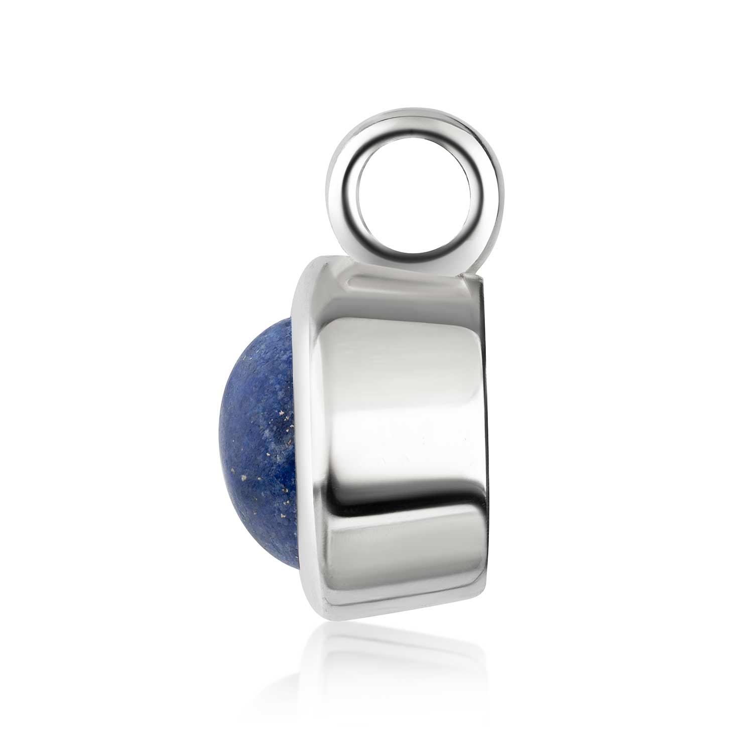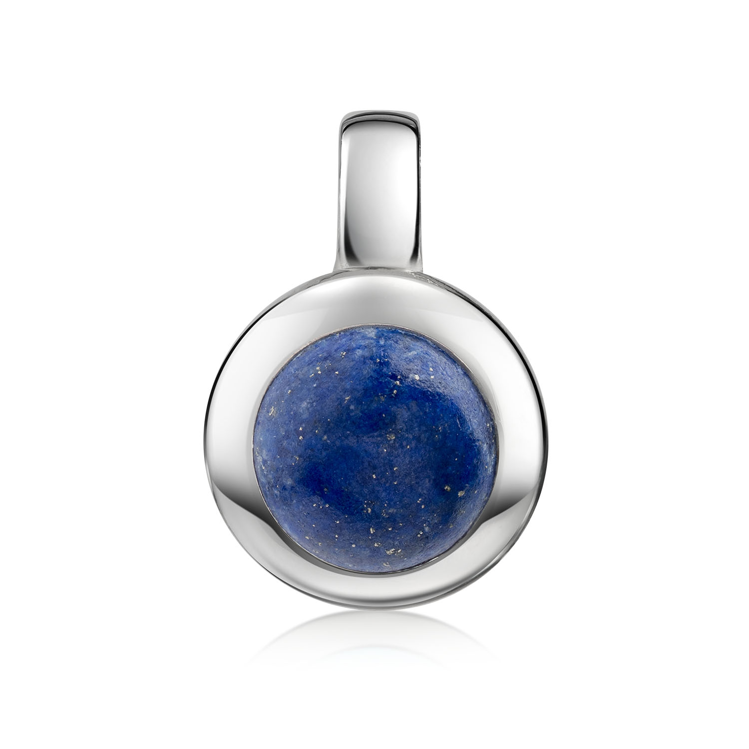 Runder Kettenanhänger aus 925 Sterling Silber mit einem echten tiefblauen Lapislazuli Edelstein im Chabochon-Schliff. Wahlweise mit einer passenden Ankerkette erhältlich.