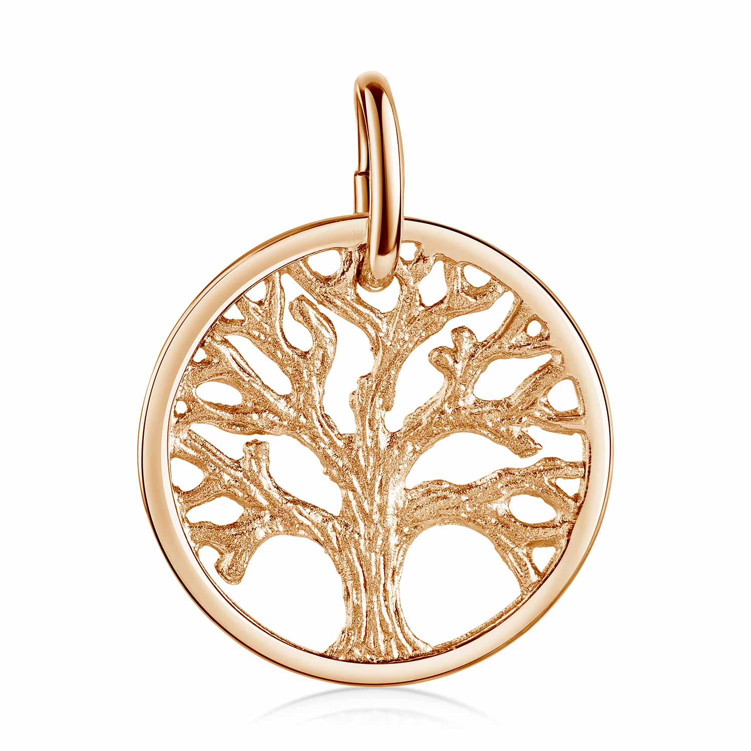 Rosegoldener Kettenanhänger mit Lebensbaum Motiv aus rosé vergoldetem 925 Sterling Silber - Wahlweise mit Ankerkette bestellbar.