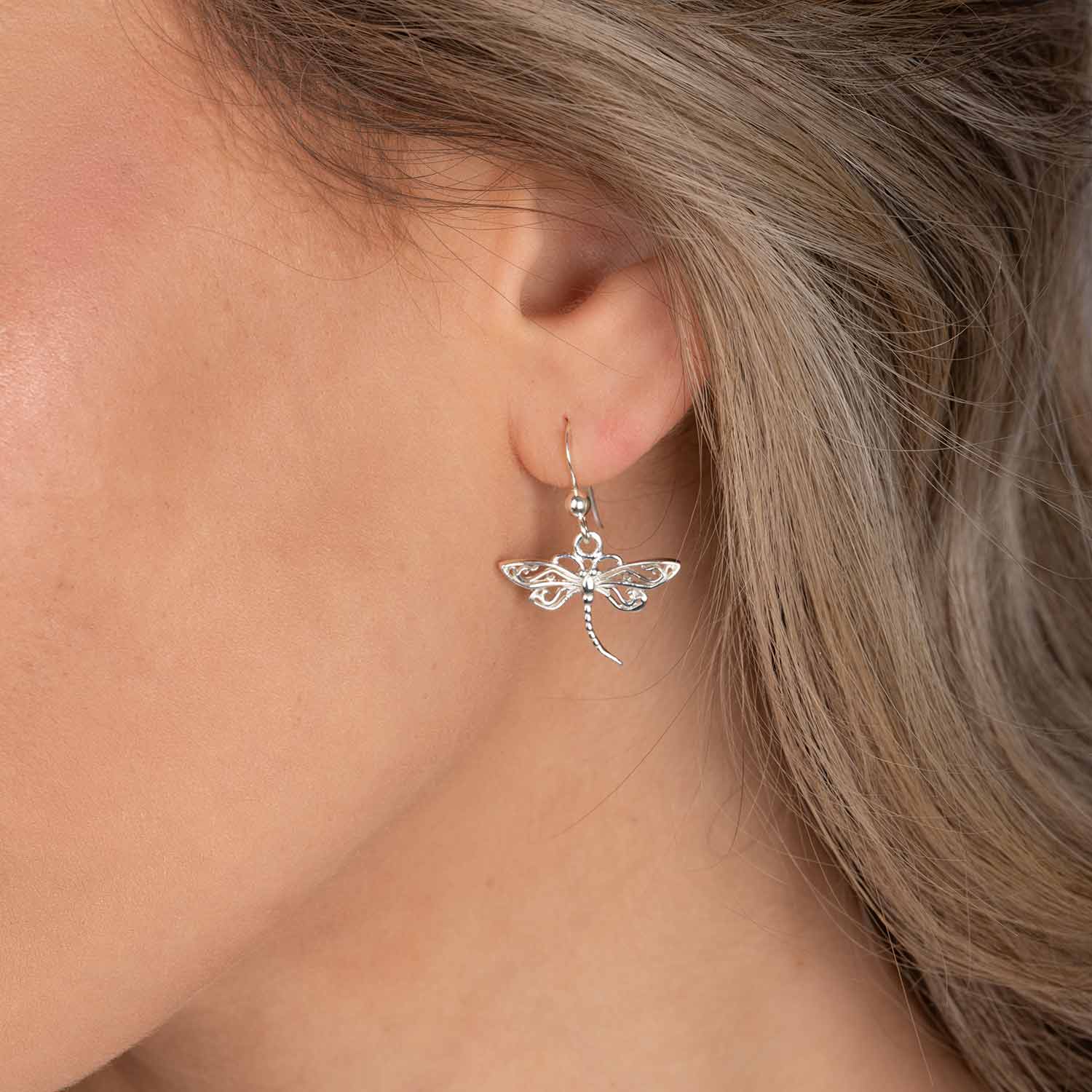 Zarte Damen Ohrringe mit Libellen Anhängern aus 925 Sterling Silber.