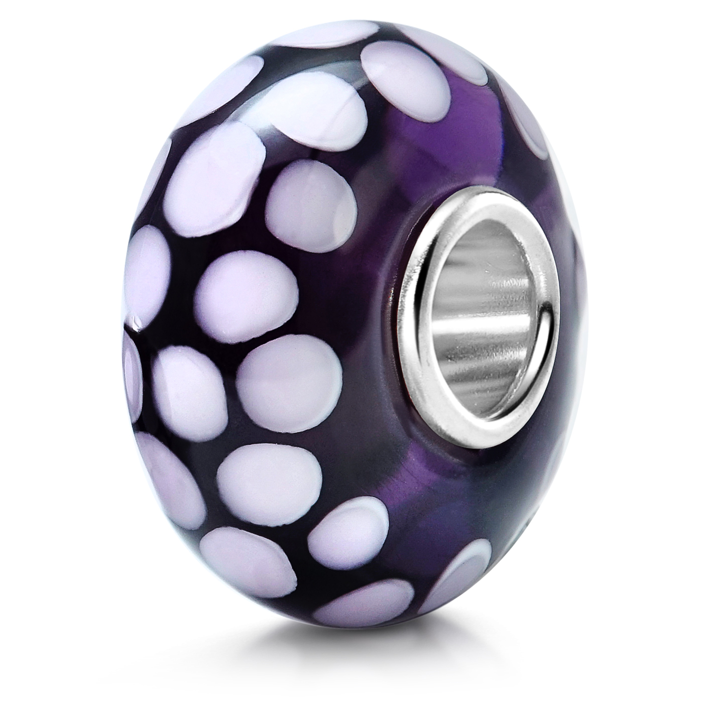 Sehr schöner lilafarbener Glas-Bead mit 925 Silber Hülse und Punkten in Helllila und Weiß. Er passt auf alle gängigen Beads Armbänder und Ketten bis max. 4,4mm Breite und ist daher für alle Marken Beads geeignet. Mit diesem und anderen farbenfrohen, modischen Beads aus unserer Kollektion können Sie Farbakzente in Ihrer Kleidung setzen und so Ihren Look individuell gestalten.