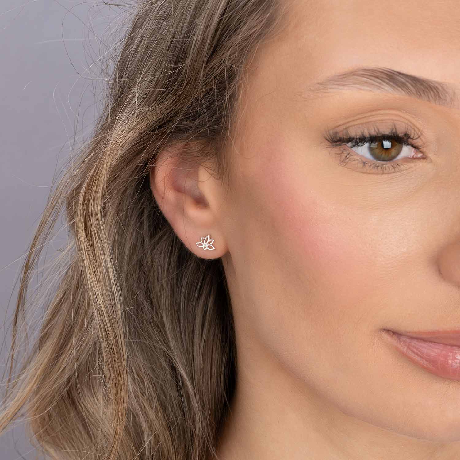 Kleine Damen Ohrstecker in Form einer Lotusblüte aus 925 Sterling Silber. Die Ohrringe eignen sich durch Ihre Größe auch für das zweite oder dritte Ohrloch.