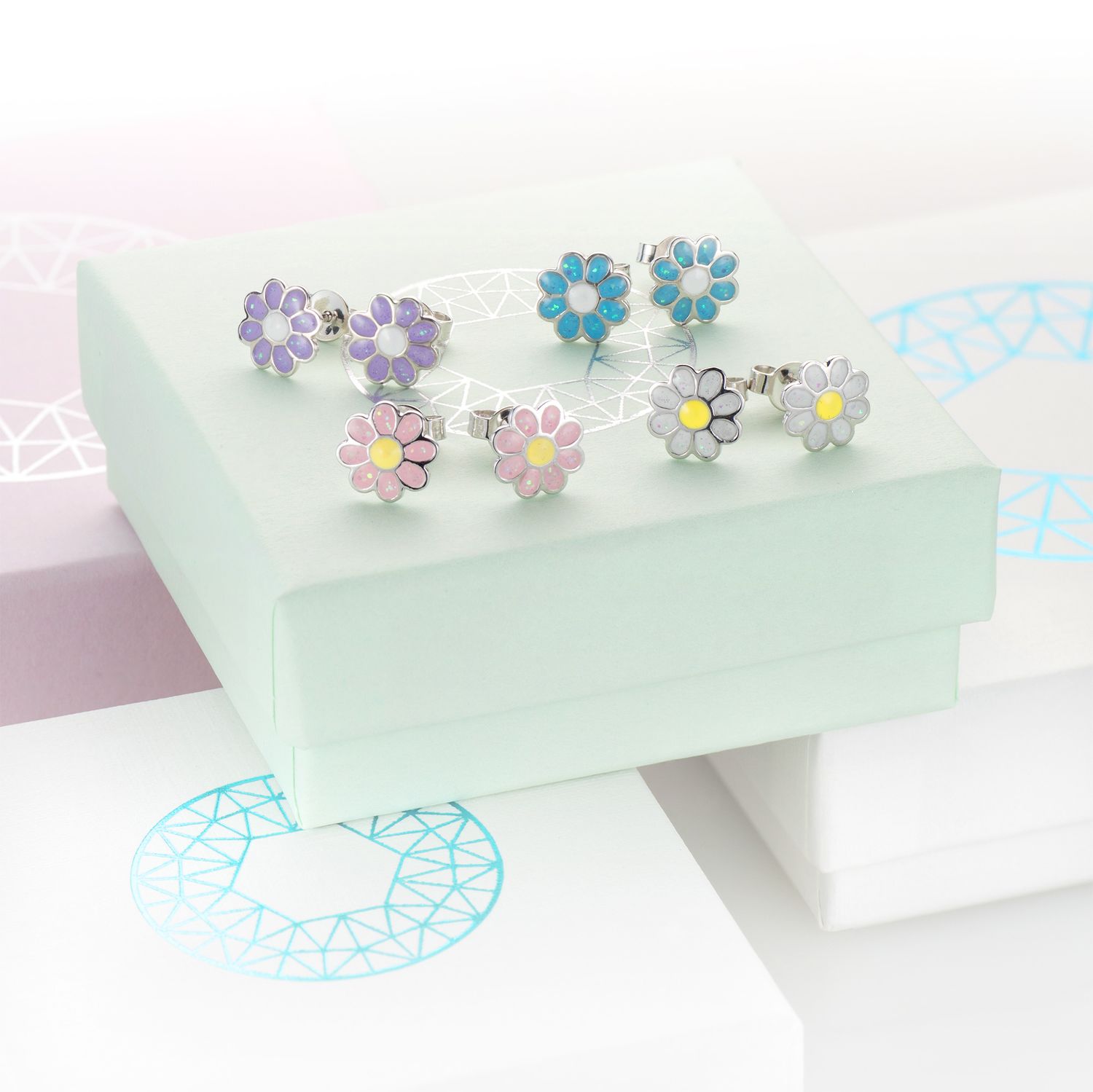 Diese süßen Ohrstecker aus feinem 925 Sterling Silber im Gänseblümchen Design mit emaillierter Oberfläche erfreuen jedes kleine Mädchenherz. Jedes Schmuckstück ist mit viel Liebe zum Detail verarbeitet und ideal als Geschenk, z.B. zu Weihnachten, zum Geburtstag oder zur Einschulung.