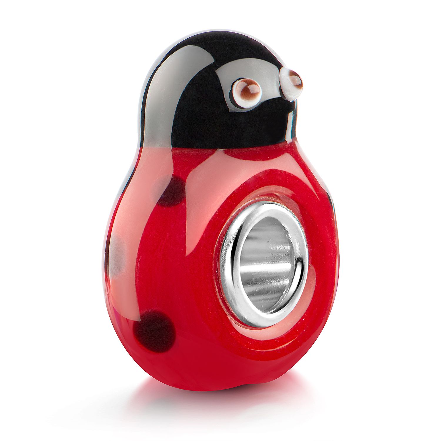 Dieses Marienkäfer Glas Element in Schwarz-Rot wird Sie durch die interessante 3D-Optik überzeugen. Die Glasperle ist zusätzlich mit einer Hülse aus reinem 925 Sterling Silber ausgestattet. Das Modell ist passend zu allen gängigen Beads Armbändern und Ketten bis max. 4,4mm Breite / Durchmesser und ist daher auch besonders für alle großen Beads Marken geeignet. Durch sein niedliches Motiv ist er auch ideal als Kindschmuck geeignet.