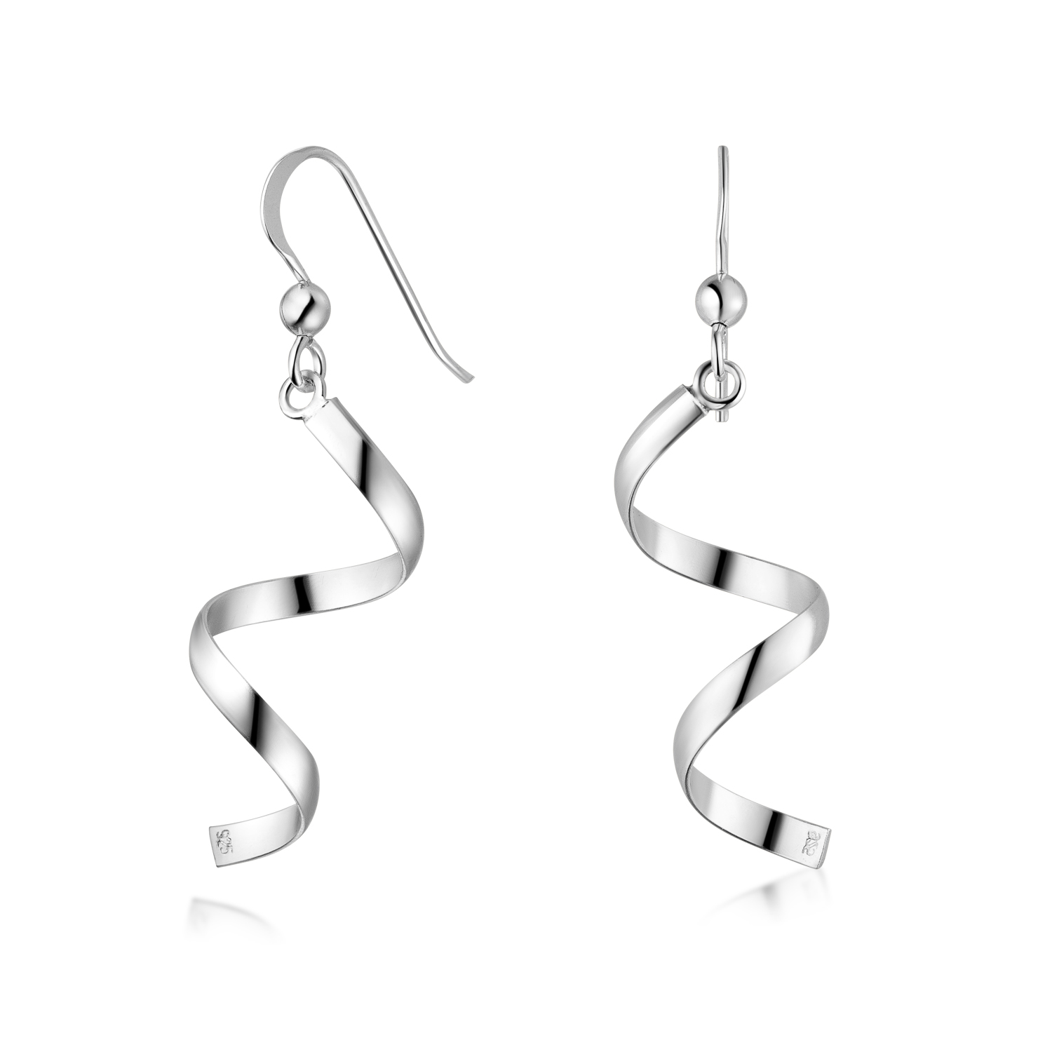 Elegante Spirale Ohrhänger im gedrehten Design aus 925 Sterling Silber. Diese Damen Ohrringe wurden rhodiniert und sind somit gegen ein Anlaufen des Silbers geschützt.