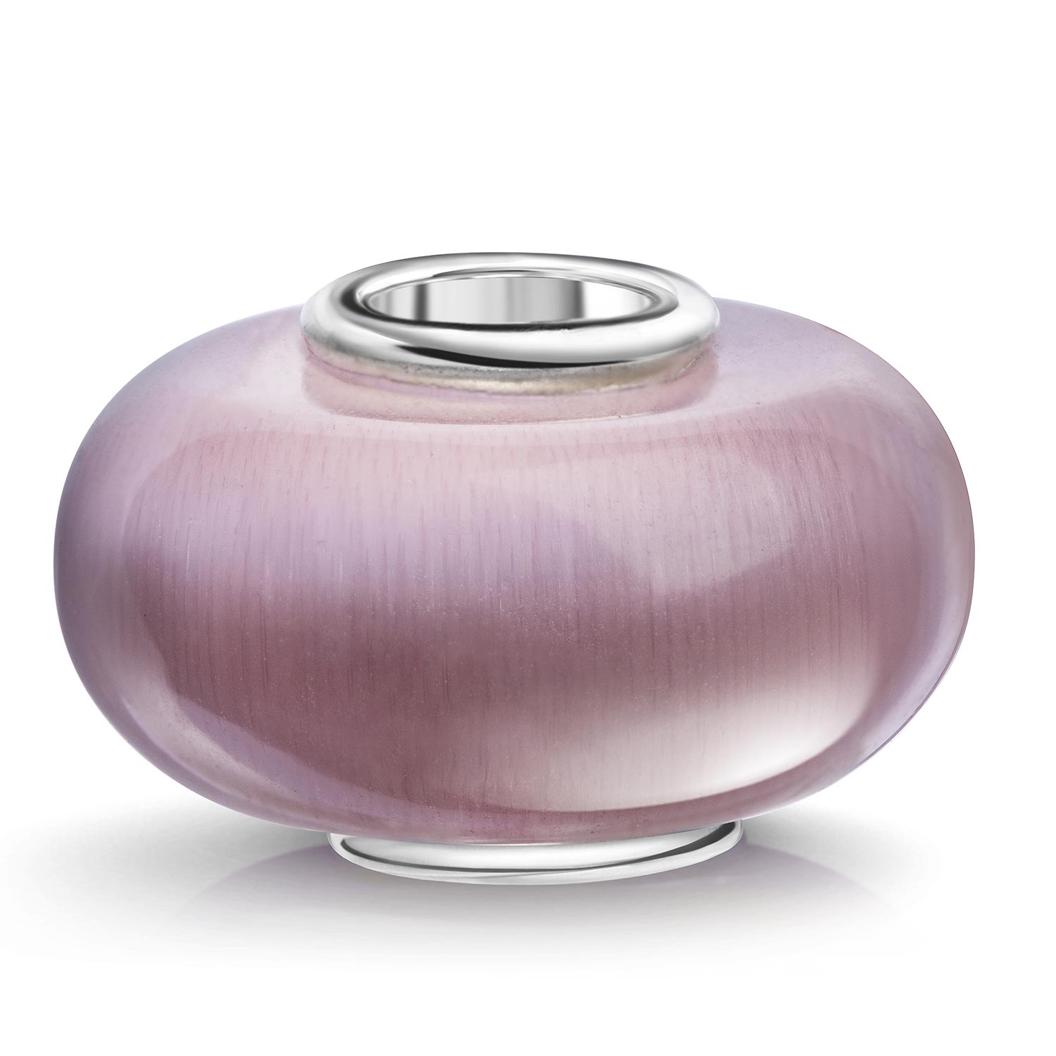 Der schimmernde lila Charm ist in Katzenaugen-Optik gefertigt. Er ist zusätzlich mit einer Hülse aus massivem 925 Sterling Silber mit Silberstempel ausgestattet und passt zu allen gängigen Beads Armbändern und Ketten bis max. 4,2mm Breite.