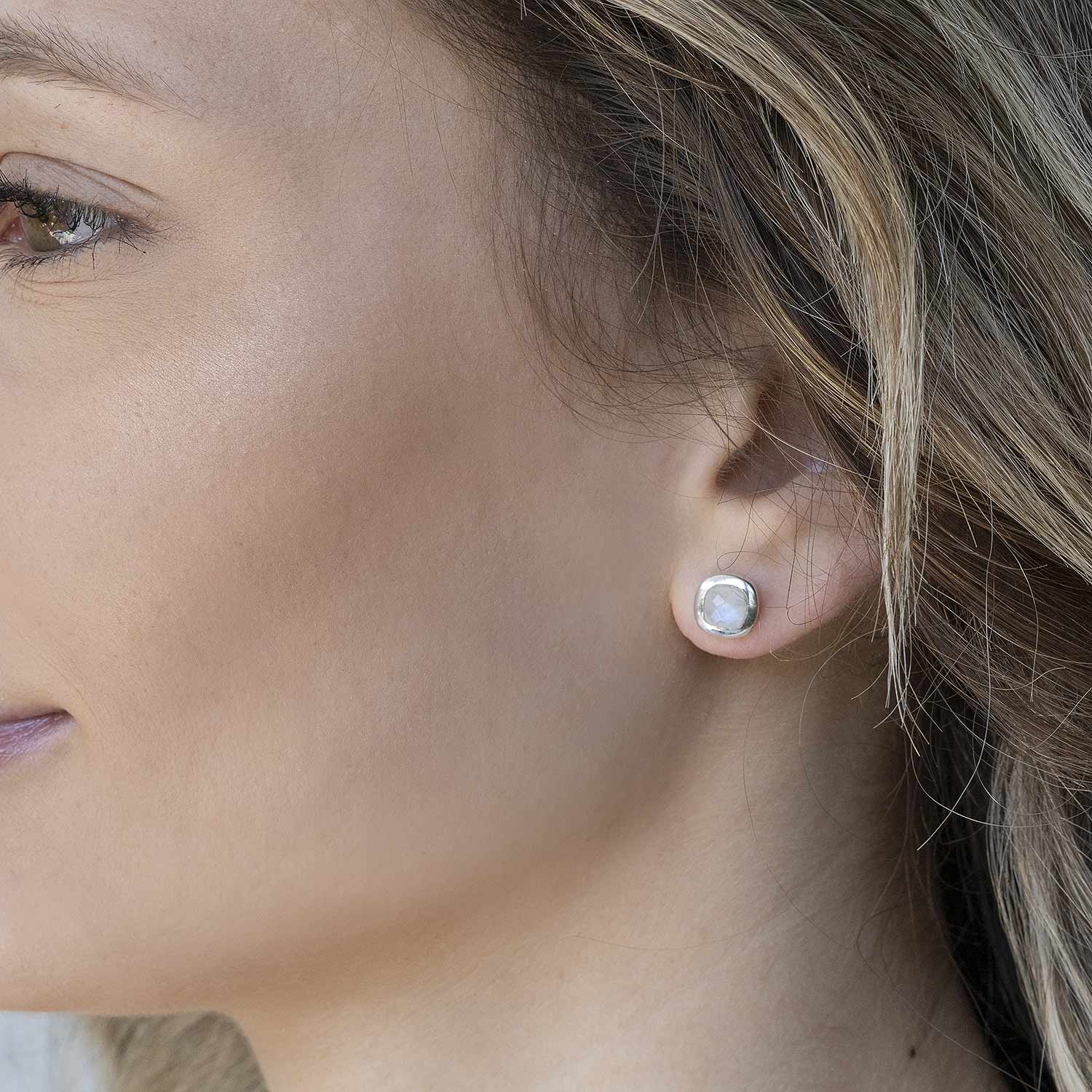 Zarter Ohrschmuck der jeden Look aufwertet: Unsere Ohrringe in quadratischer Form mit echten Mondstein Edelsteinen werten deinen Look auf. Da Mondstein ein Naturstein ist, ist jeder Stein ein Unikat und es kann zu leichten Farbabweichungen kommen.