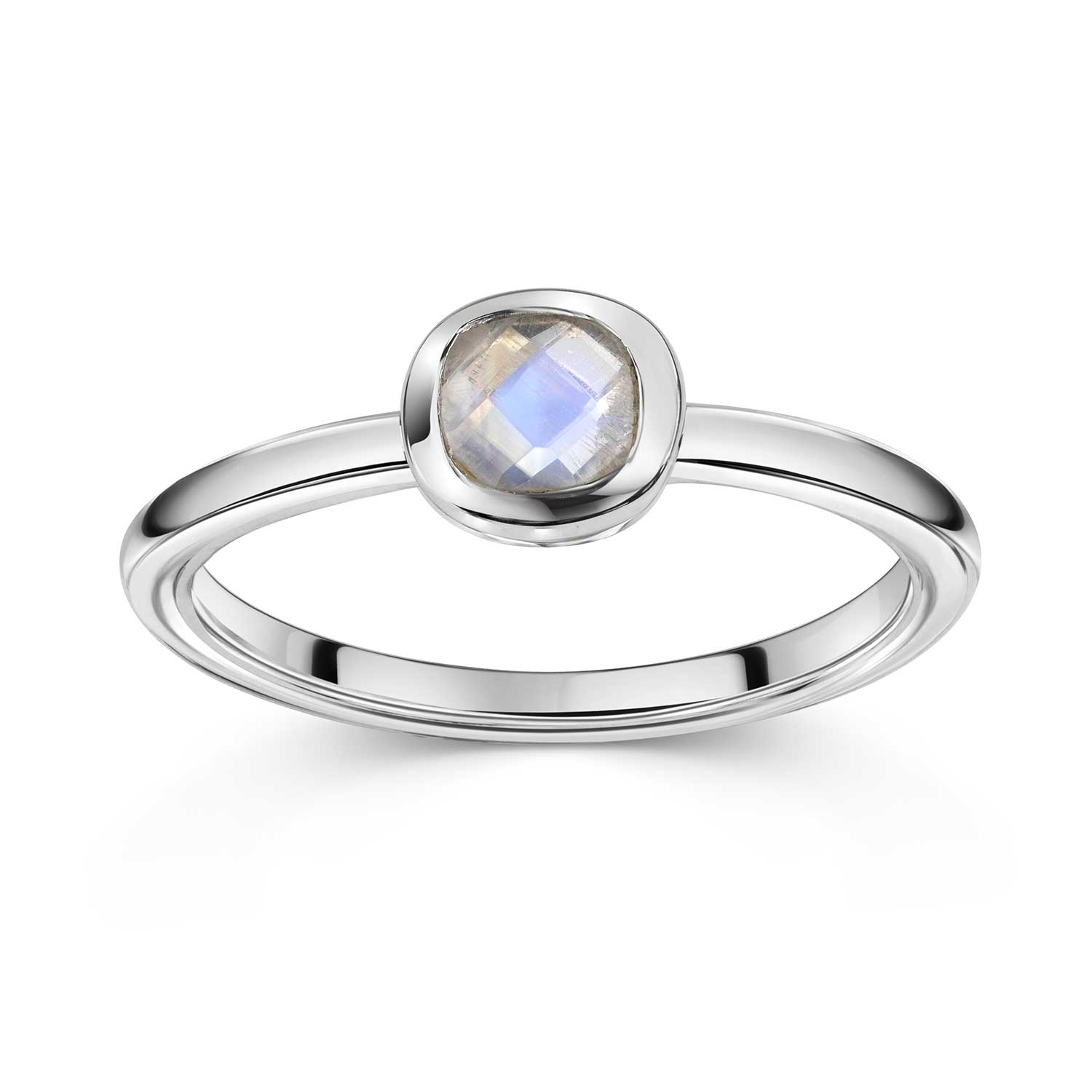 Für einen eleganten und doch dezenten Look sorgt unser quadratischer Ring aus 925 Sterling Silber, der mittig mit einem facettierten Mondstein geschmückt ist. Der Edelstein Ring passt sowohl zur Alltags-, als auch zur Abendgarderobe.