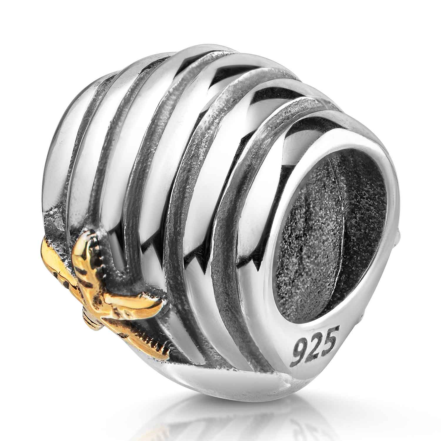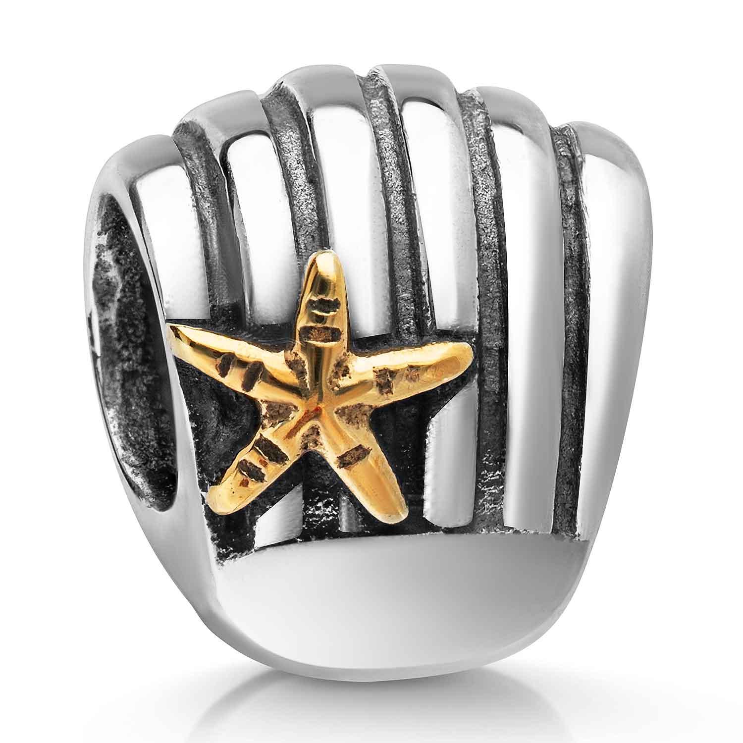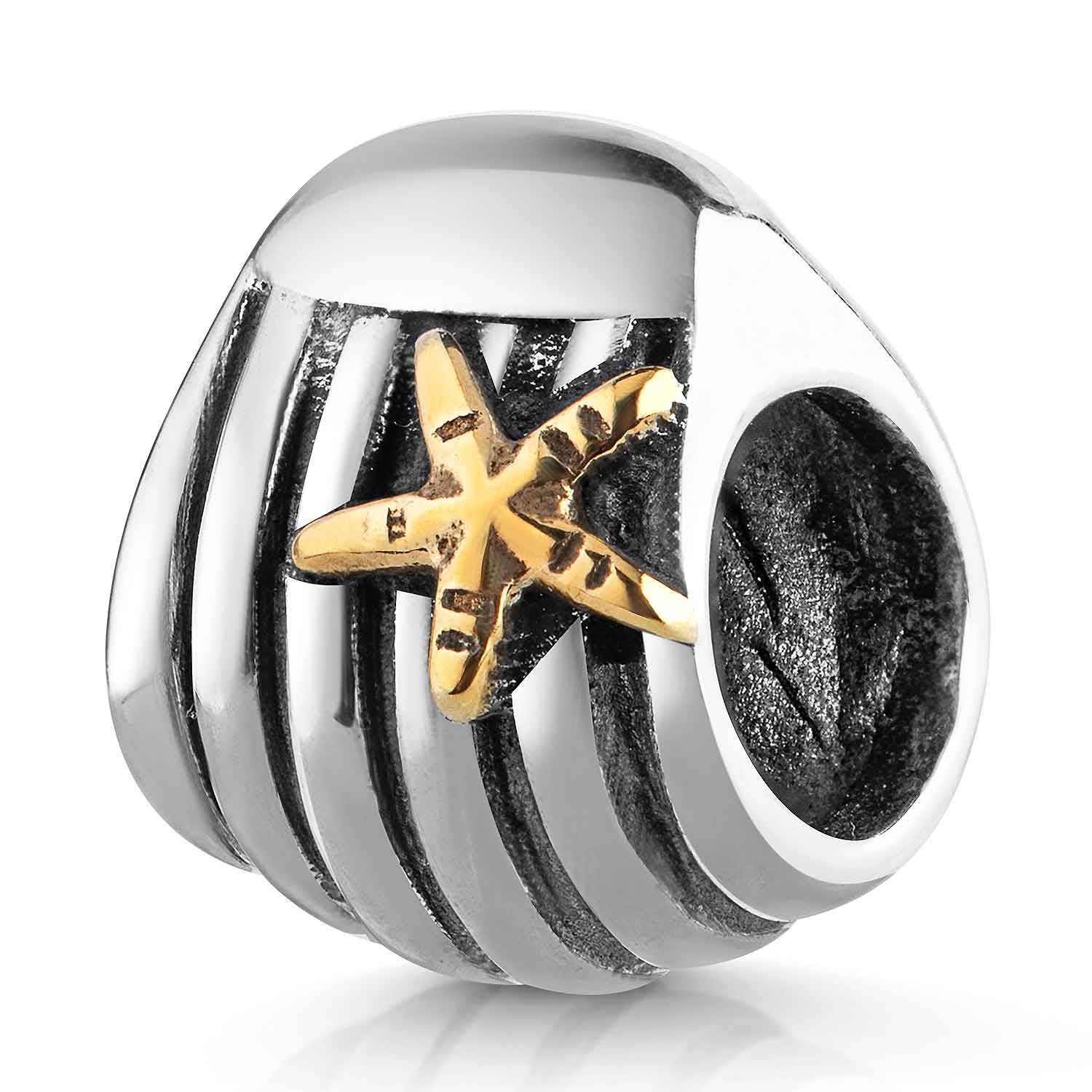 Dieser massive 925er Silber Bead ist mit einer robusten 14K Vergoldung überzogen und zeigt als Motiv eine Muschel mit goldenem Stern. Der Bead Schmuck Anhänger ist ideal als Element für ihr European Beads Armband geeignet. Das Muschel Element ist passend zu allen gängigen Bead Armbändern bis max. 4,4mm Stärke und somit kompatibel zu fast allen Beads Armbändern bekannter Marken / Hersteller.