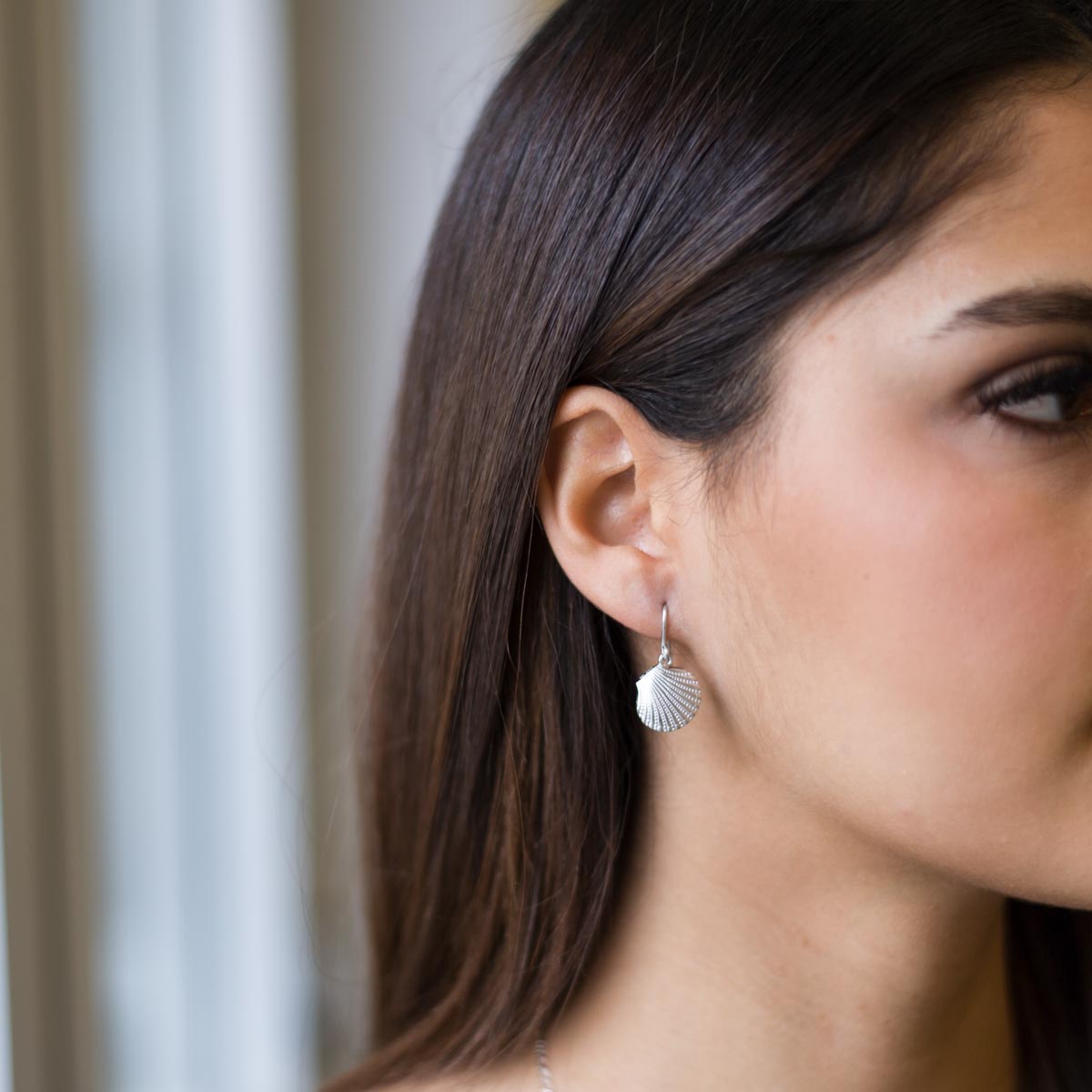 Die Perlenohrringe wurden kunstvoll einer Seemuschel mit geriffelter Oberfläche nachgebildet. Sie überzeugen durch die hochwertige Verarbeitung aus erfahrener Silberschmiede. Die Muscheln sind beidseitig dreidimensional ausgearbeitet, im Inneren findet sich je eine weiße Muschelkernperle.