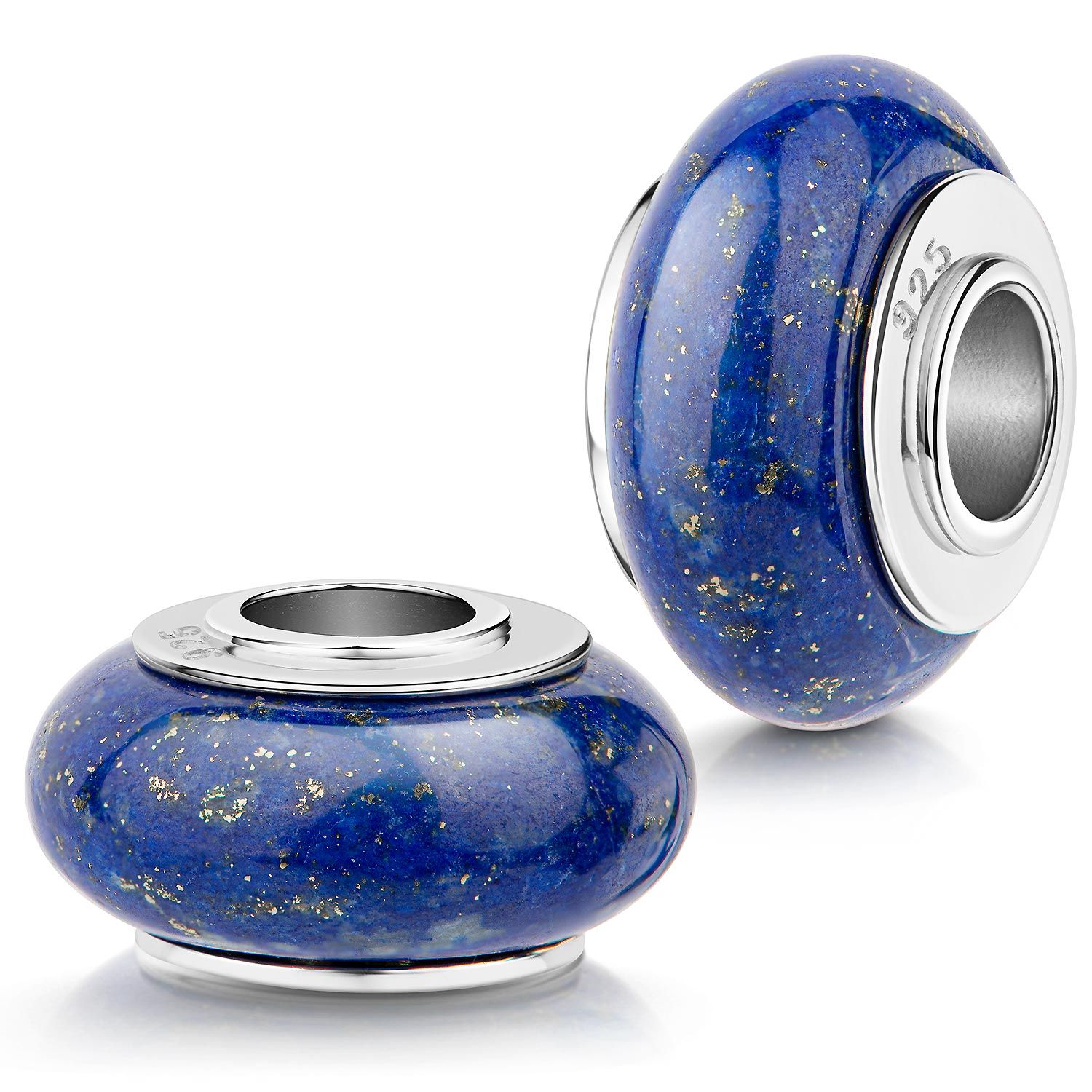 Dieser Edelstein Bead aus edlem Lapislazuli in Blau. Die 925 Sterling Silber Hülse ist außergewöhnlich massiv und breit gearbeitet, das Element besticht insgesamt durch eine besonders hochwertige Qualität. Dieser Lapislazuli Charm ist passend für alle Beads Armbänder oder Ketten mit einer maximalen Breite / Durchmesser von 4,4mm.