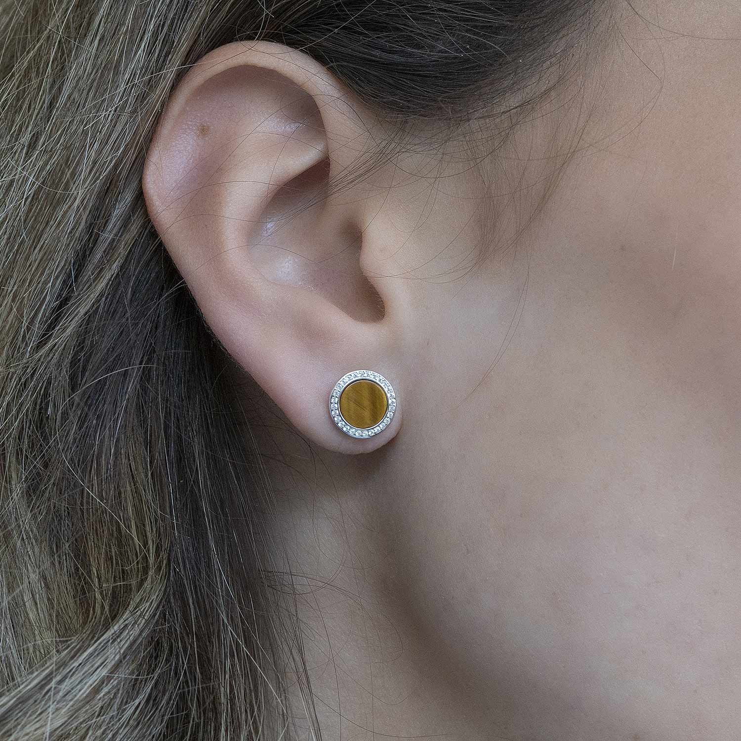 Damen Ohrringe - mit Tigerauge und Zirkonia