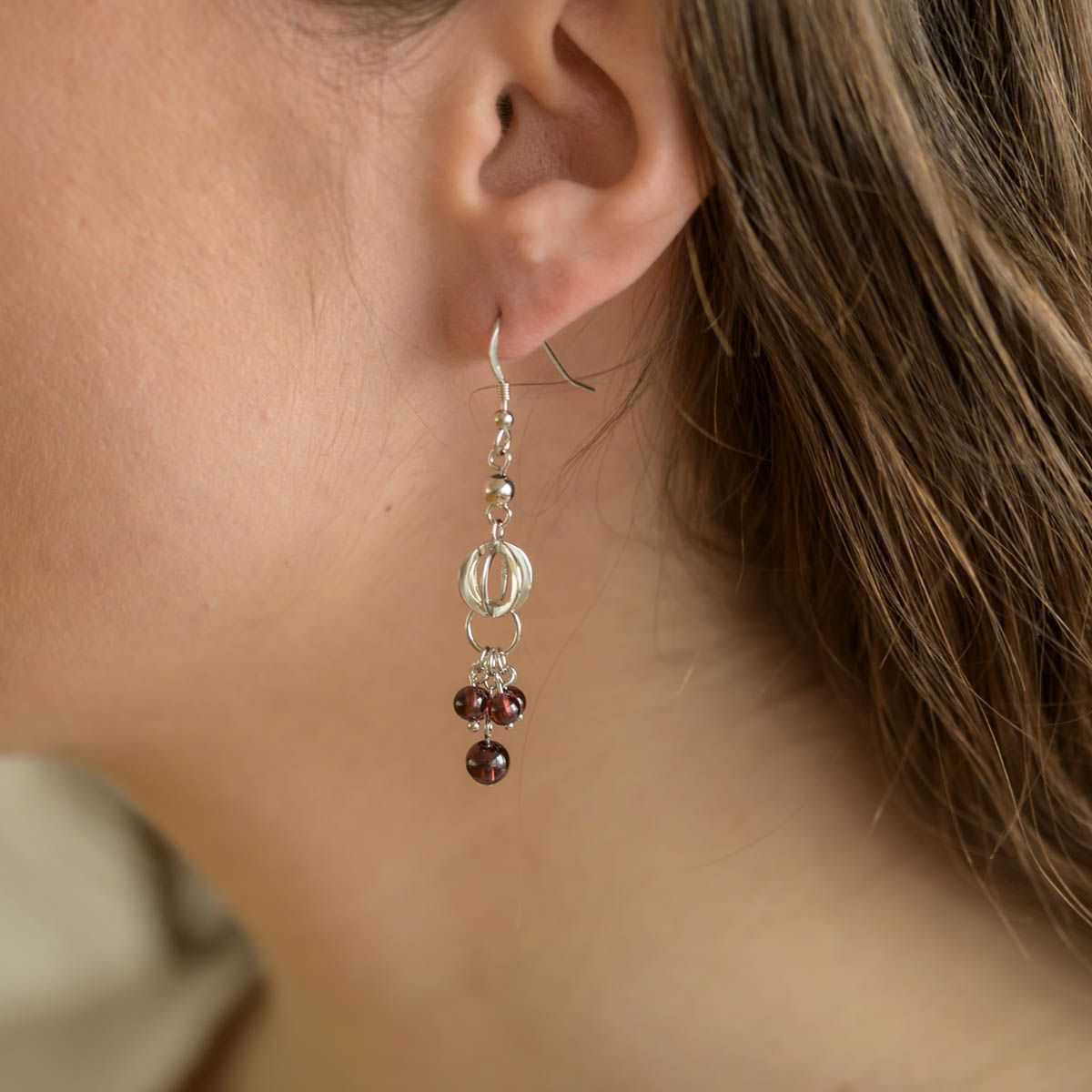 Filigran gearbeitet und absolut hochwertig in der Verarbeitung sind unsere Damen Ohrringe mit echten Granat-Edelsteinen. Alle Teile der Ohrhänger sind freischwingend, wodurch eine besonders schöne Pendeloptik entsteht.