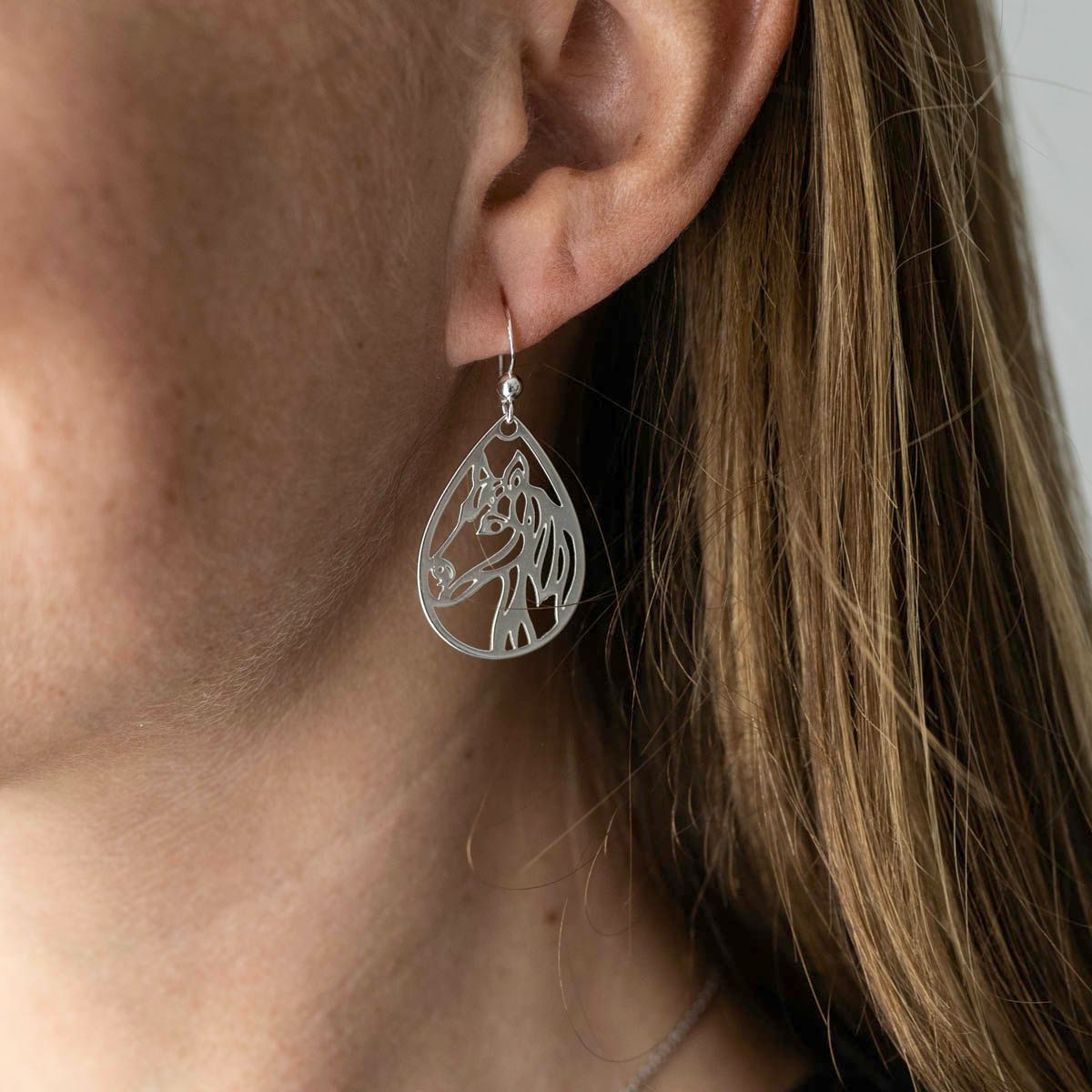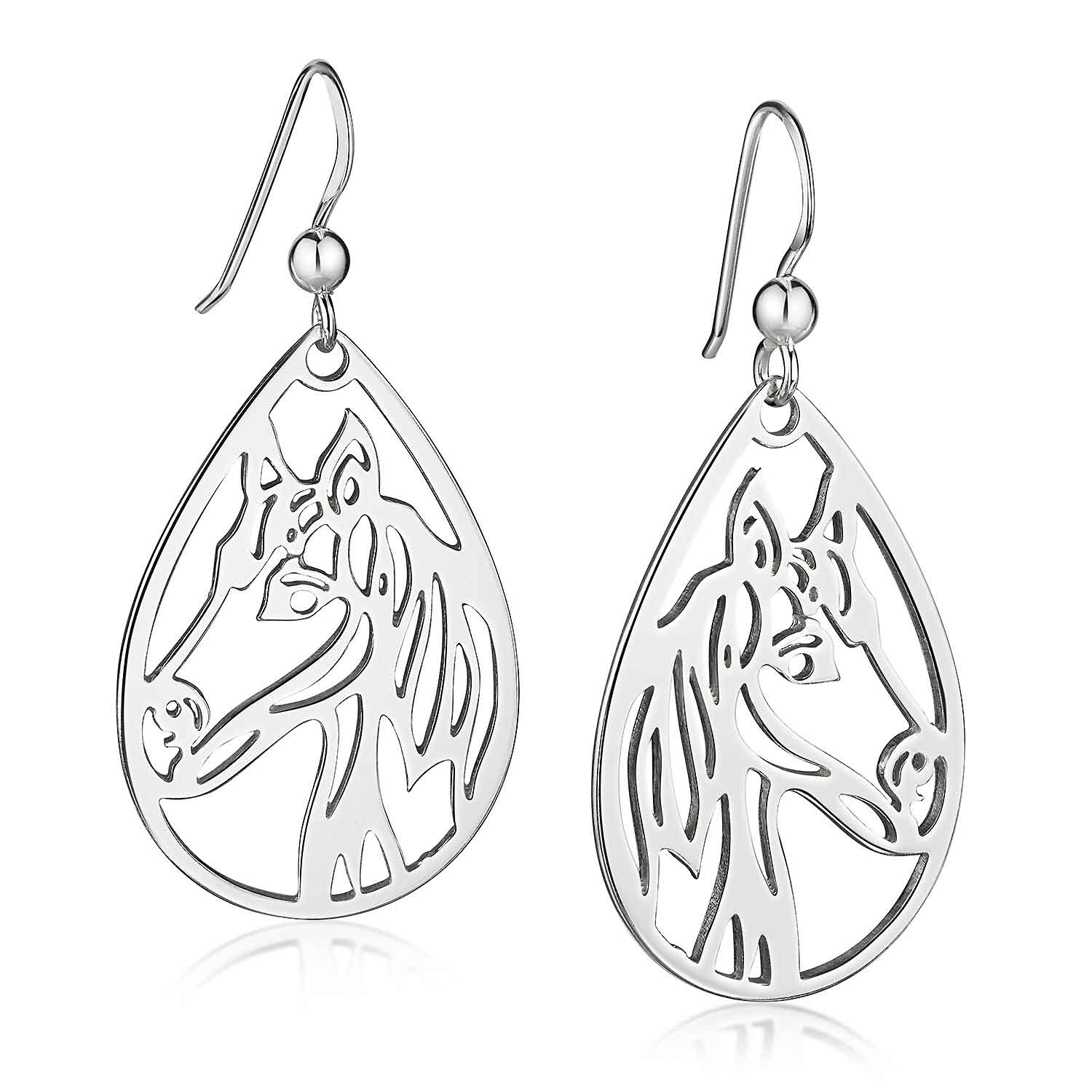 Große Ohrhänger mit Pferdekopf Motiv aus reinem 925 Sterling Silber.