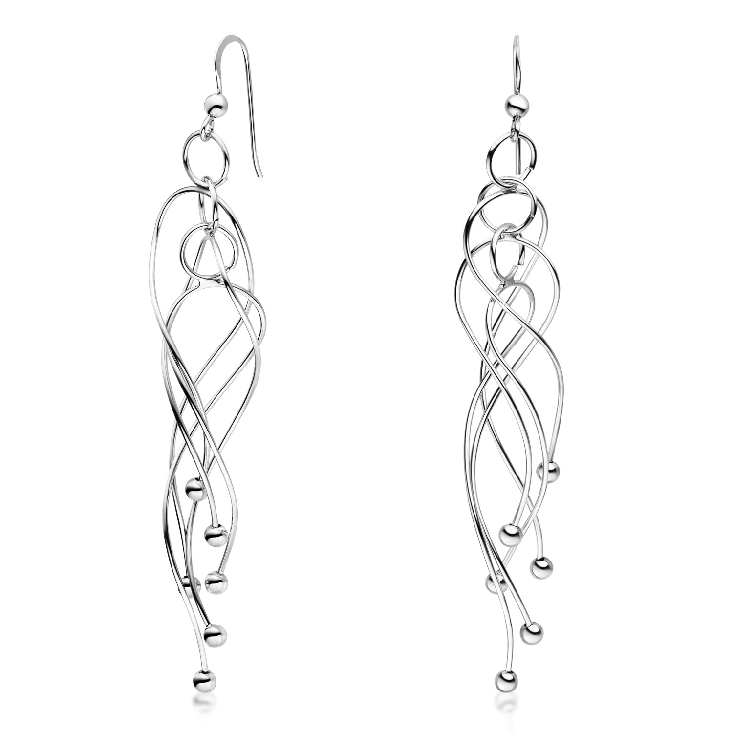 Diese Schmuck Kugel Ohrhänger im Spiralen Design wurden aus massivem 925 Sterling Silber gearbeitet. Die Damen Ohrringe besitzen durch ihr geringes Gewicht einen hohen Tragekomfort. Jeder Ohrschmuck Silber Hänger ist freischwingend und daher besonders elegant und edel im Design.