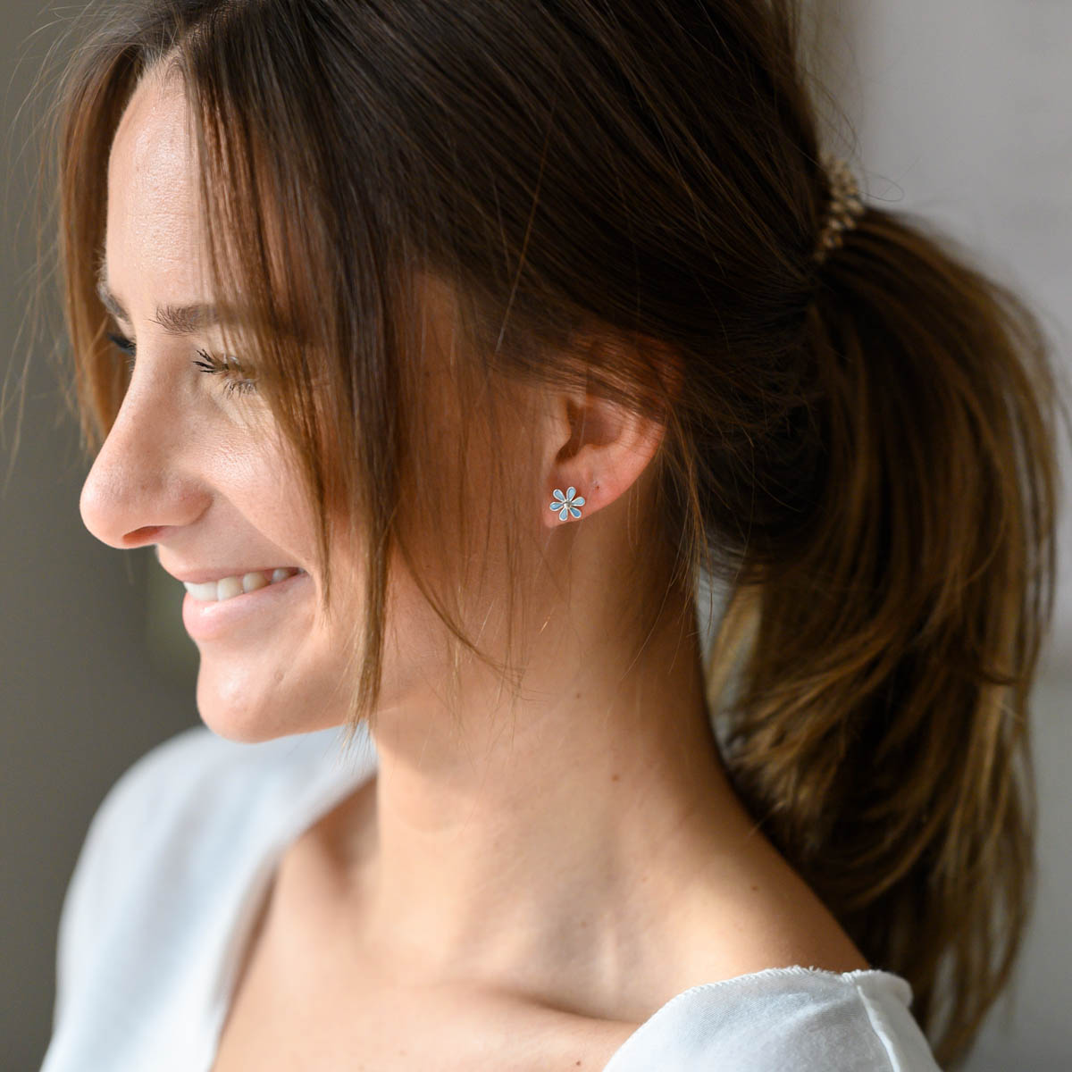 Ohrstecker Perlmutt Blume hellblau