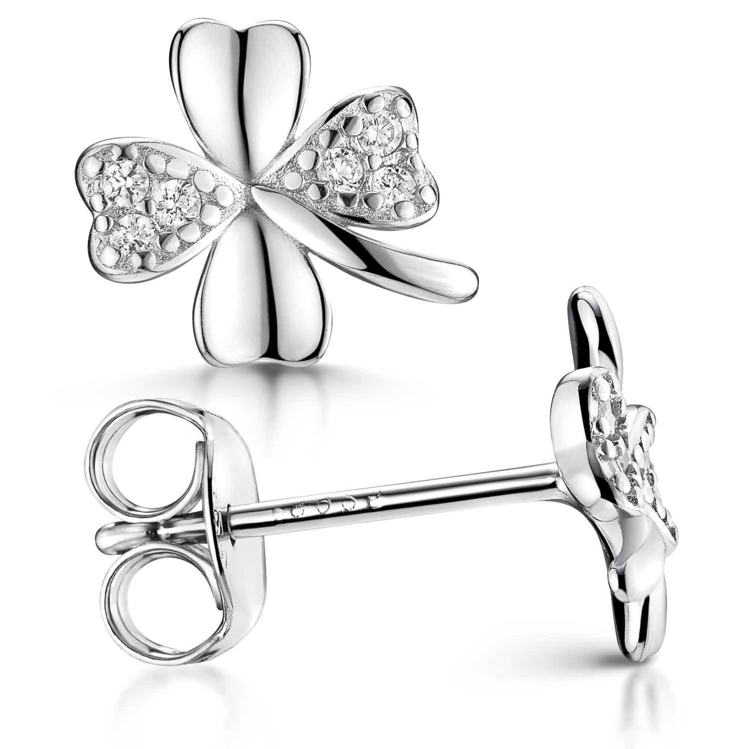 Kleeblatt Ohrstecker mit Zirkonia Steinen