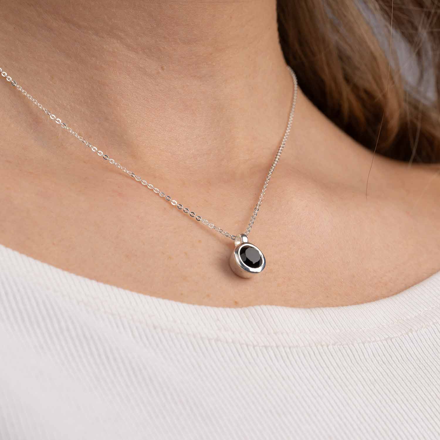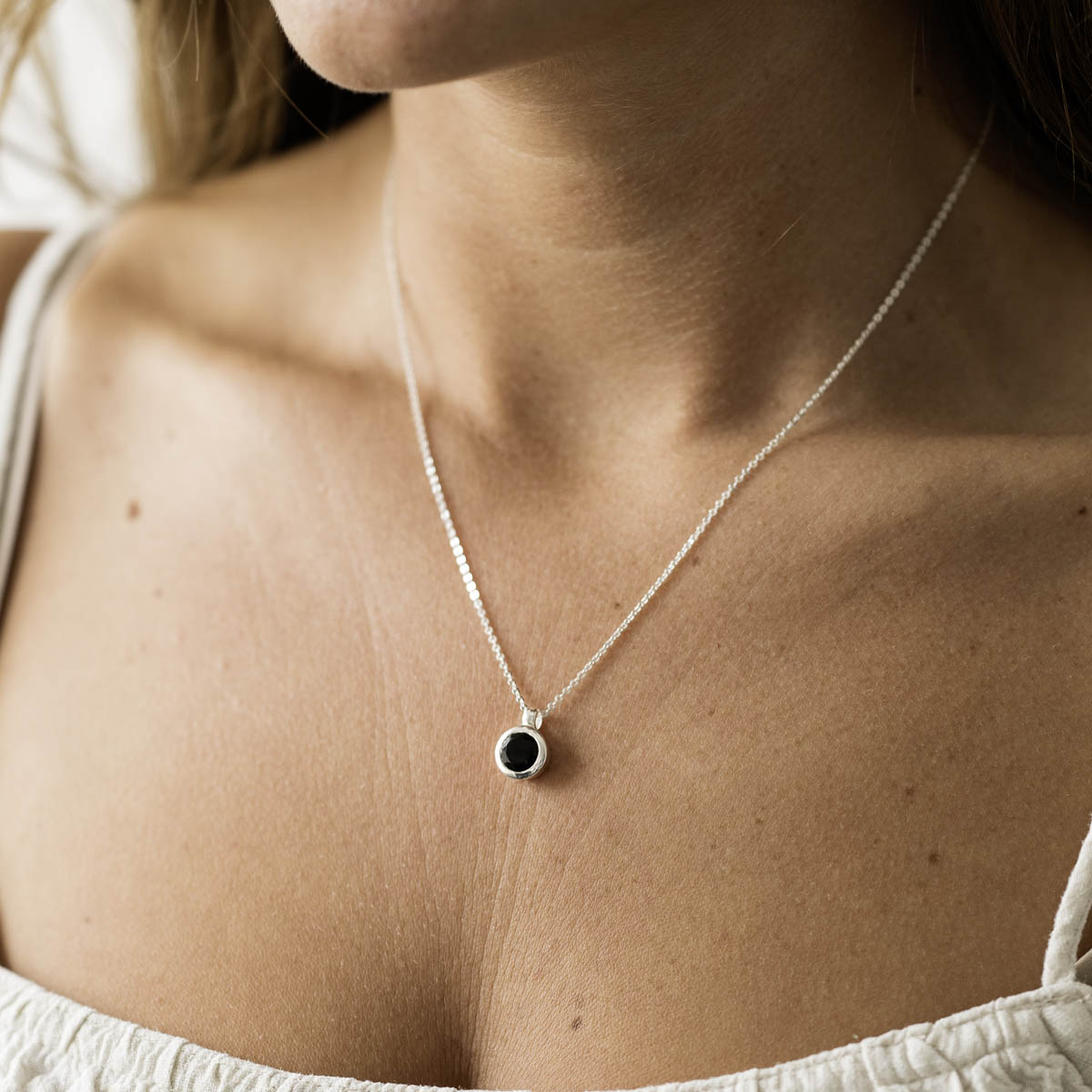 Runder Kettenanhänger aus 925 Sterling Silber mit einem facettierten Onyx. Wahlweise mit einer passenden Ankerkette erhältlich.