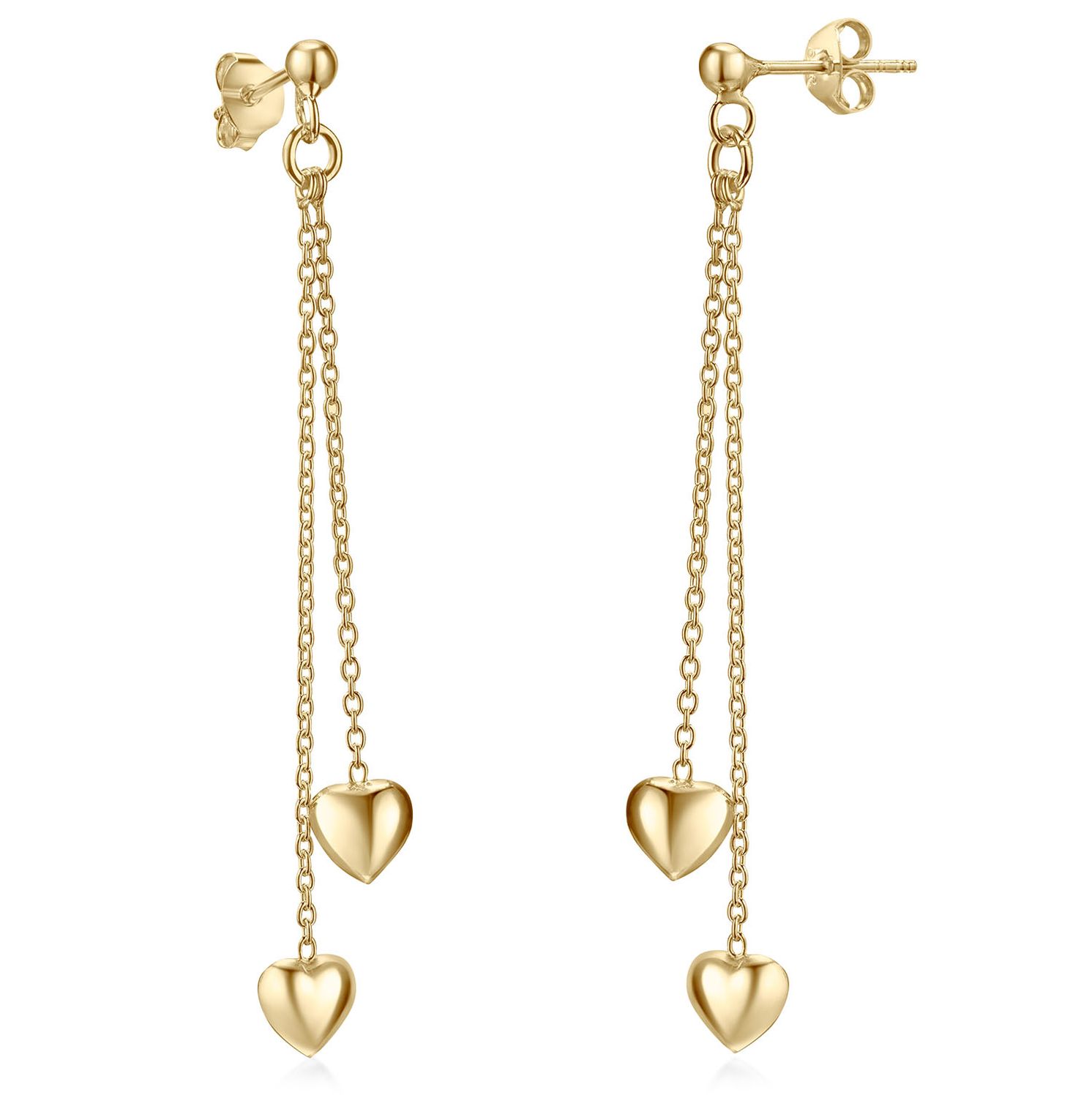 Romantische Pendel Ohrringe mit Herzen aus gelbvergoldetem Sterlingsilber - mit klassischen Butterfly-Verschlüssen.
