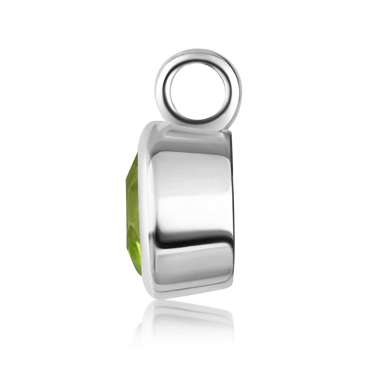 Runder Kettenanhänger aus 925 Sterling Silber mit einem facettierten Peridot. Wahlweise mit einer passenden Ankerkette erhältlich.