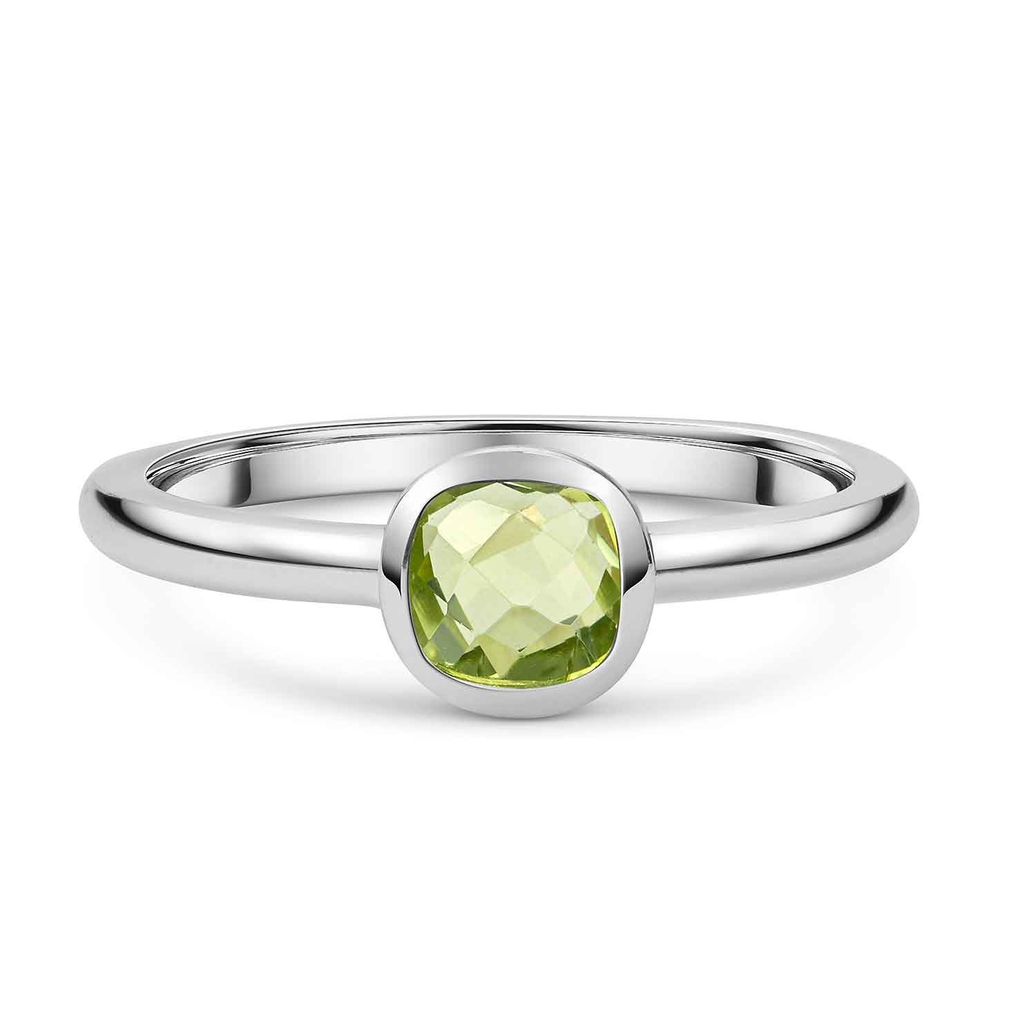 Für einen eleganten und doch dezenten Look sorgt unser quadratischer Ring aus 925 Sterling Silber, der mittig mit einem facettierten Peridot Stein geschmückt ist. Der Edelstein Ring passt sowohl zur Alltags-, als auch zur Abendgarderobe.