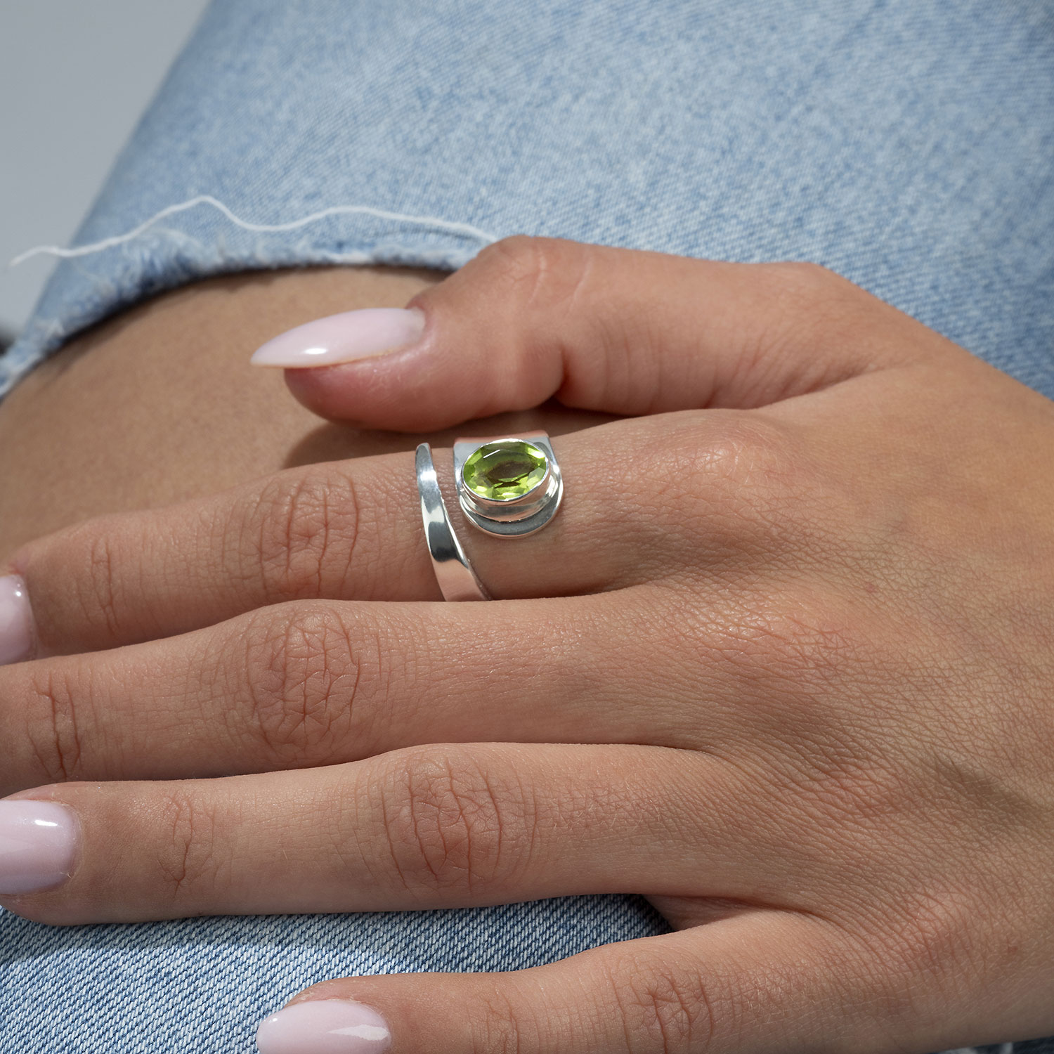 Unser ausgefallener Damenring wurde aus 925 Sterling Silber hergestellt und ist mit einem wunderschönen grünen Peridot-Stein besetzt. Der Ring passt sich durch seine leichte Verstellbarkeit perfekt ihrem Finger an.