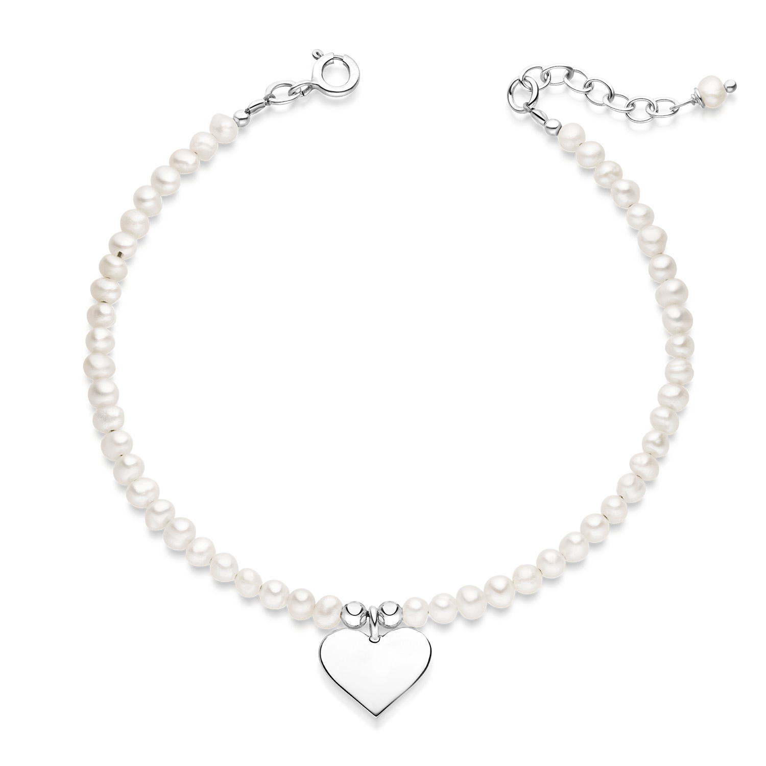 Zartes Damen Armband mit zahlreichen Süßwasserzucht-Perlen und einem Herz-Anhänger aus 925 Sterling Silber.